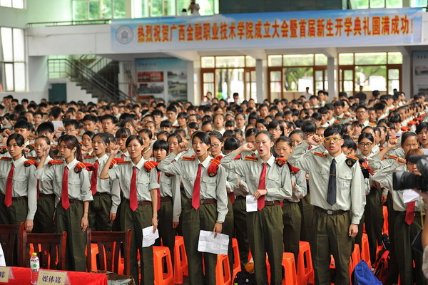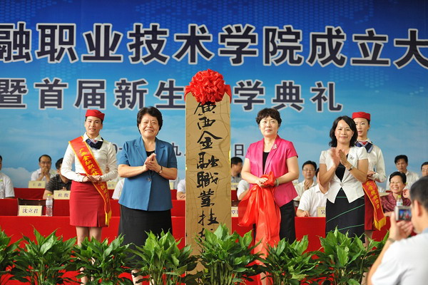9月20日,伟德国际victor1946成立大会暨首届新生开学典礼在学院大礼堂隆重举行,自治区人民政府副主席李康,自治区人民政府副秘书长吴建新,自治区高校工委书记、教育厅厅长秦斌,全国金融职业教育教学指导委员会秘书长、中国金融培训中心主任马玉兰,中国人民银行南宁中心支行副行长苏阳等各大金融机构代表及校企合作单位代表、老干部代表出席本次大会。大会由学院党委书记覃艳娟主持。