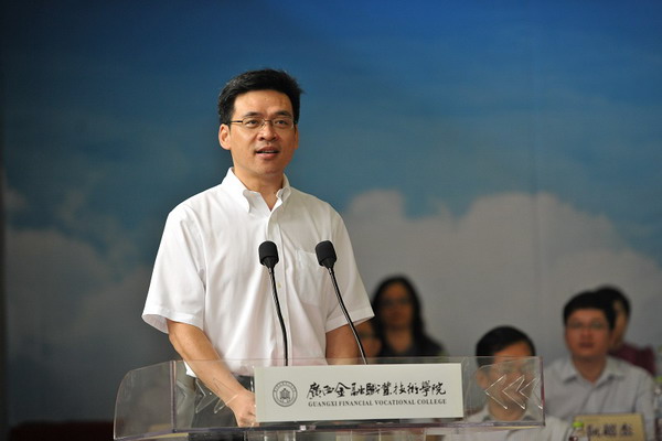 全国金融职业教育教学指导委员会秘书长、中国金融培训中心主任马玉兰,中国人民银行南宁中心支行副行长苏阳、校企合作单位建设银行广西区分行副行长黄诚东相继做了致辞。表示伟德官网的成立一定会为广西乃至全国的金融行业发展做出积极的推动作用,并对伟德官网的建设及其发展前景给与了高度肯定。
