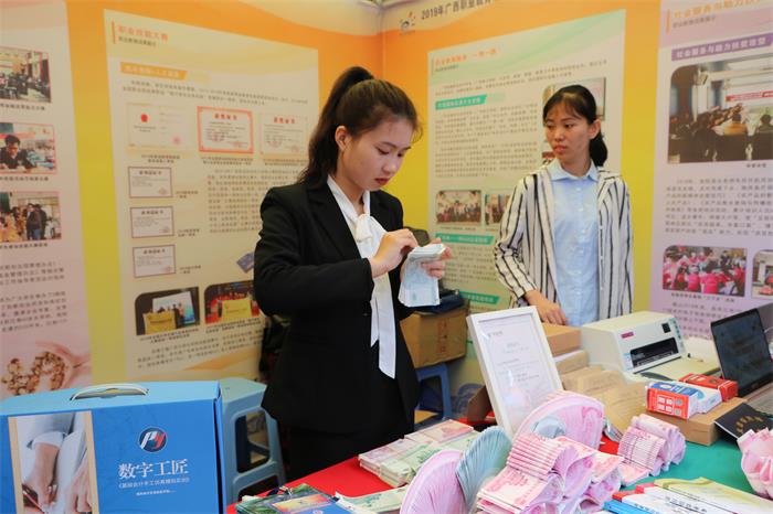 本次活动伟德官网以“合作开放的金融人才培养”的主题进行参展,伟德官网教务科研处、交流合作中心、金融系、会计系师生共计10人参加此次展会,展示了伟德官网学生的财经技能以及职业教育成果和对外合作交流情况。在展示活动现场,自治区教育厅厅长唐咸仅、广西职业教育发展研究中心常务副主任王屹、自治区教育厅职成处处长覃壮才以及各友好合作单位领导莅临参观了伟德官网展区,高度赞扬伟德官网学生良好的精神风貌、娴熟的技艺,并与伟德官网学生亲切互动。