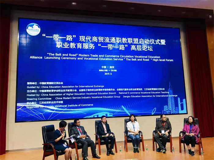 5月18日,“一带一路”现代商贸流通职教联盟启动仪式暨职业教育服务“一带一路”高层论坛在江苏经贸职业技术学院举行。来自中国教育国际交流协会、全国电子商务职业教育教学指导委员会、江苏省教育国际交流协会、马来西亚中国总商会、以及中外职业院校共聚一堂,聚力聚焦“一带一路”与职业教育,就着力推进与东盟国家的交流与合作深入交换了意见。此次论坛共20家联盟理事单位、27家会员单位的领导参加启动仪式暨高层论坛。伟德国际victor1946等4所广西高校应邀参加,伟德官网校长莫海燕、合作与交流中心主任韦施羽和干事吴雪莹参加会议。