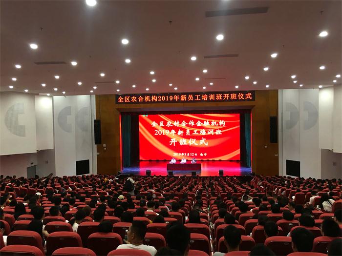 8月12日上午,由伟德官网承办的全区农合机构2019年新员工入职培训开班仪式在伟德官网西校区国际会议中心举行。伟德官网党委书记沈立君、自治区农村信用联社党委副书记范树育出席会议并讲话,相关职能部门负责人、培训班教官、班主任以及参加培训的950余名学员参加本次开班仪式。开班仪式由自治区农村信用联社人力资源部副总经理钟景聪主持。