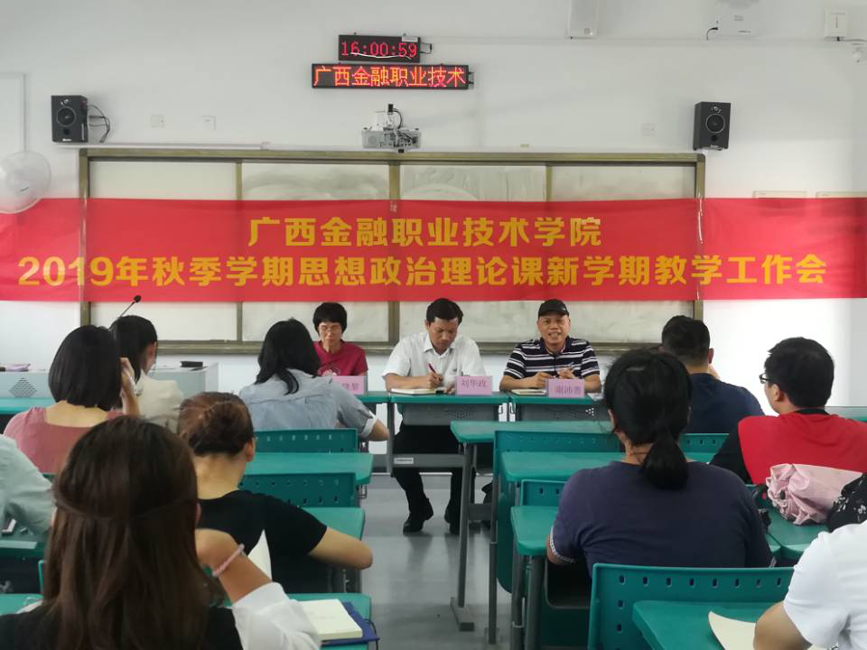 9月23日下午,伟德官网社科部在第二教学楼A603教室召开2019年秋季学期思想政治理论课教学工作会。学院党委副书记、纪委书记刘华政、副院长谢沛善出席会议,社科部全体教师、校内行政兼课教师、校外聘用任课教师参加会议。会议由社科部主任兰晓黎主持。
