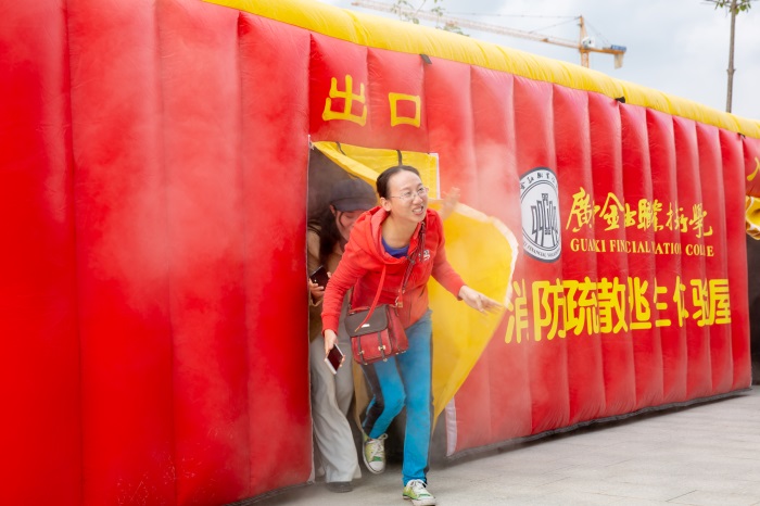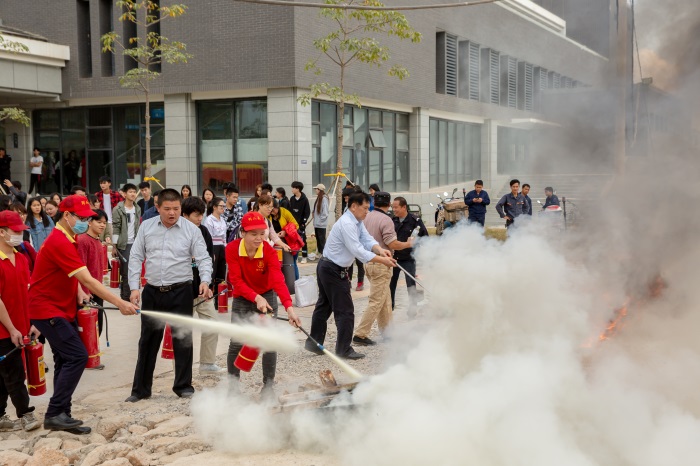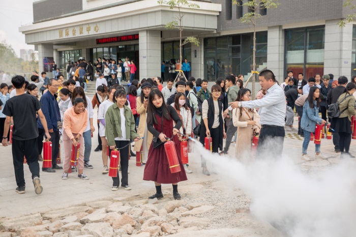 讲座结束后,师生们共同演练了消防逃生和灭火器的使用。