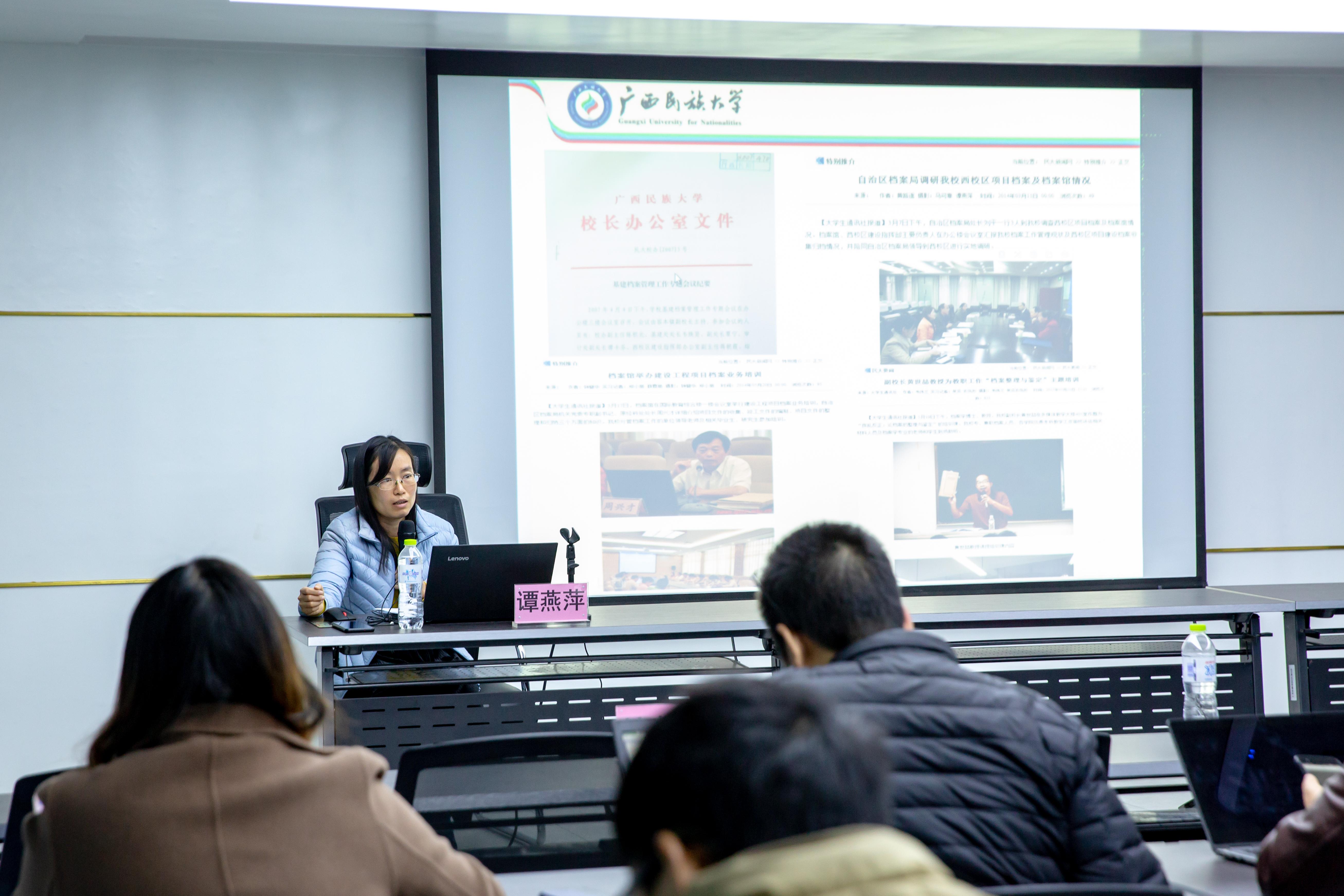 为进一步提升伟德官网教职员工对档案管理工作的履职能力,规范伟德官网各部门的档案工作,提高档案意识。12月20日下午,广西民族大学档案馆副馆长、研究馆员、硕士生导师,自治区档案局自治区级重大建设项目档案验收专家谭燕萍到伟德官网西校区行政楼312会议室举行了“聚焦新时代高校档案工作”的专题讲座。学校副校长潘大胜、党政办公室(国际交流处)副处长韩蓓丽、机要档案科科长陆萍,科级及以上干部、各部门负责人、档案管理员、行政工作人员、各系(部)行政秘书和教学秘书近50人参加了培训。讲座由韩蓓丽主任主持。