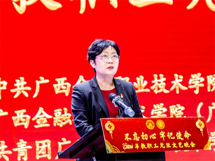 在一片欢乐喜庆、温馨祥和的氛围中,学校党委书记沈立君发表了热情洋溢的新年致辞。她代表学校党委向辛勤工作、甘于奉献的广大教职员工,向勤奋好学、砺志成才的同学们,向关心和支持学校改革发展的离退休老同志和教职员工,致以节日的问候和新年的祝福!沈立君书记要求,全校师生要以“敢闯敢试、敢为人先”的开创精神,真抓实干、攻坚克难,感恩奋进、砥砺前行,奋力推进学校高质量跨越式发展,为把学校早日建成中国特色高水平高职学校而努力奋斗!
