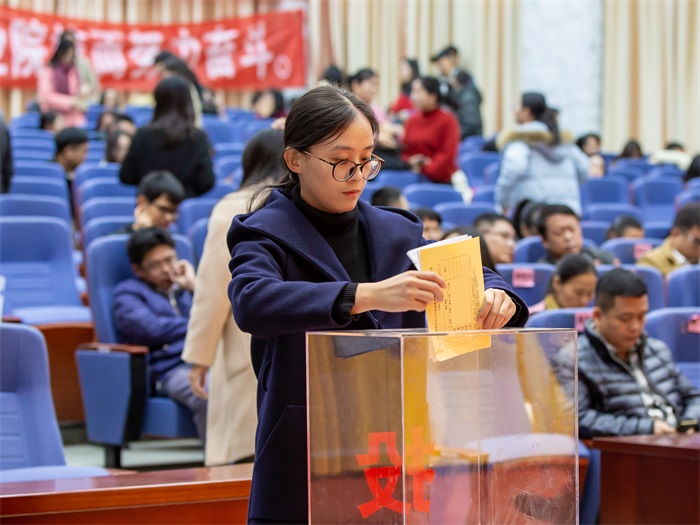 随后,由全体教职员工对学校领导及部门领导进行2019年年度民主测评。