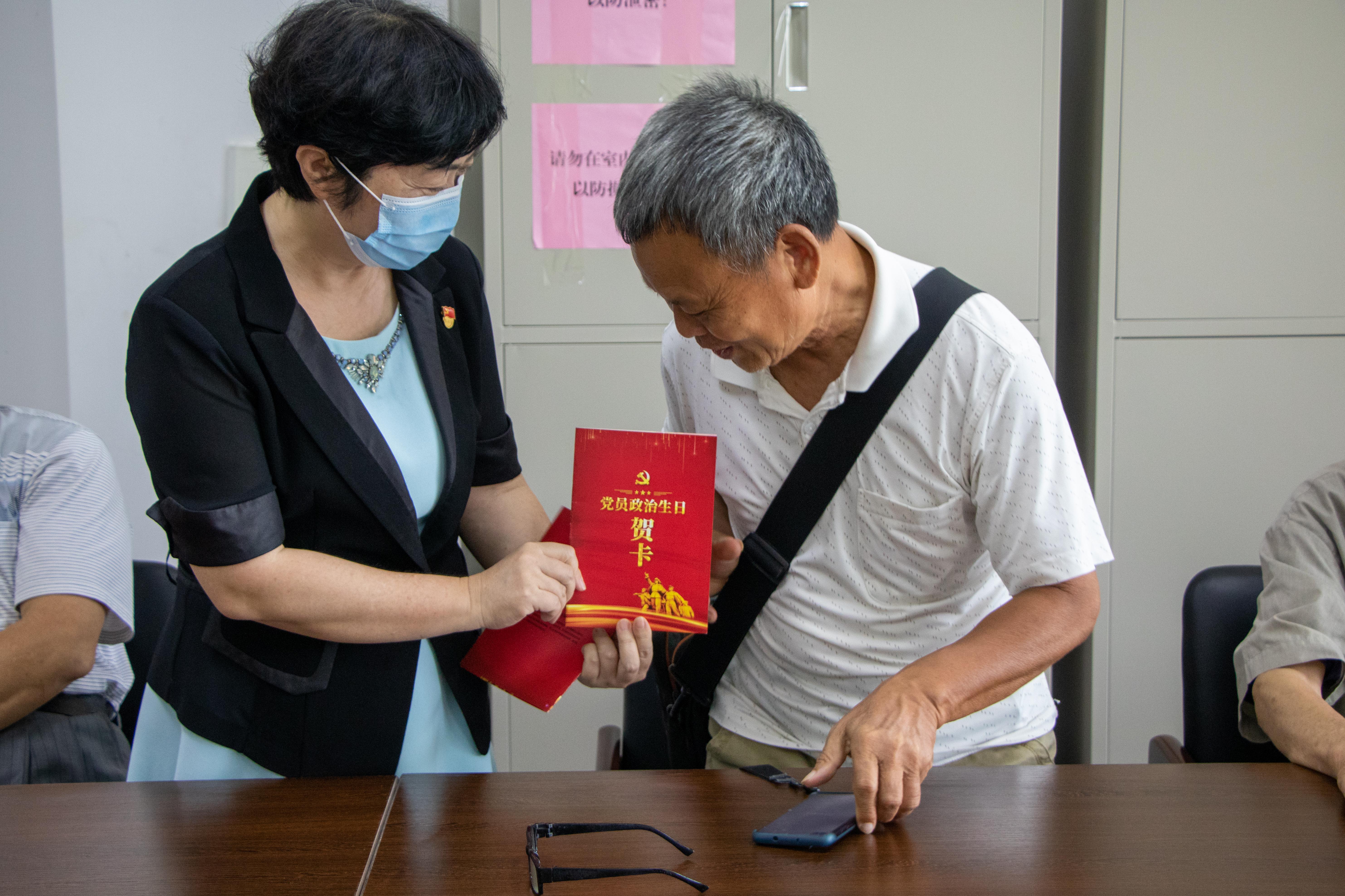 随后,直属第一党支部及离退休党支部的党员同志们共同开展了一次庆祝党员政治生日活动。此次活动为参与活动的离退休老党员和6月、7月入党的在职党员同志精心制作了“党员政治生日贺卡”,在贺卡内注明了党员入党誓词和对党员的祝福语,时刻提醒党员不忘初心,牢记使命。