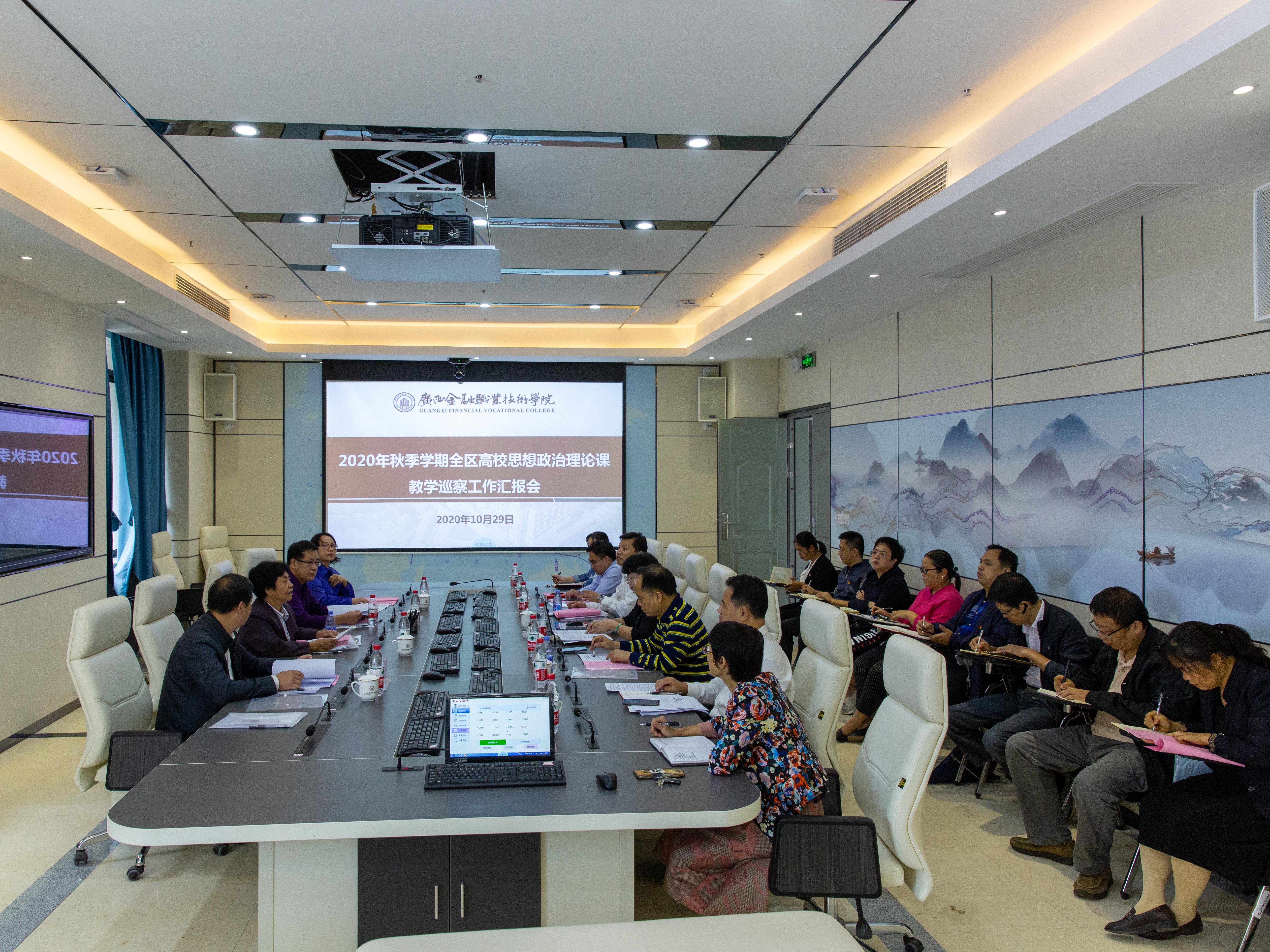 10月29日下午,自治区高校思想政治理论课教学工作第三巡察组专家陈雪斌、杨武、陈洪涛、龙海平一行来到伟德官网开展对思想政治理论课的教学指导工作。学校领导、相关部门主要负责人以及思政课课程负责人参加了汇报会和反馈会。会议由党委副书记、纪委书记刘华政主持。