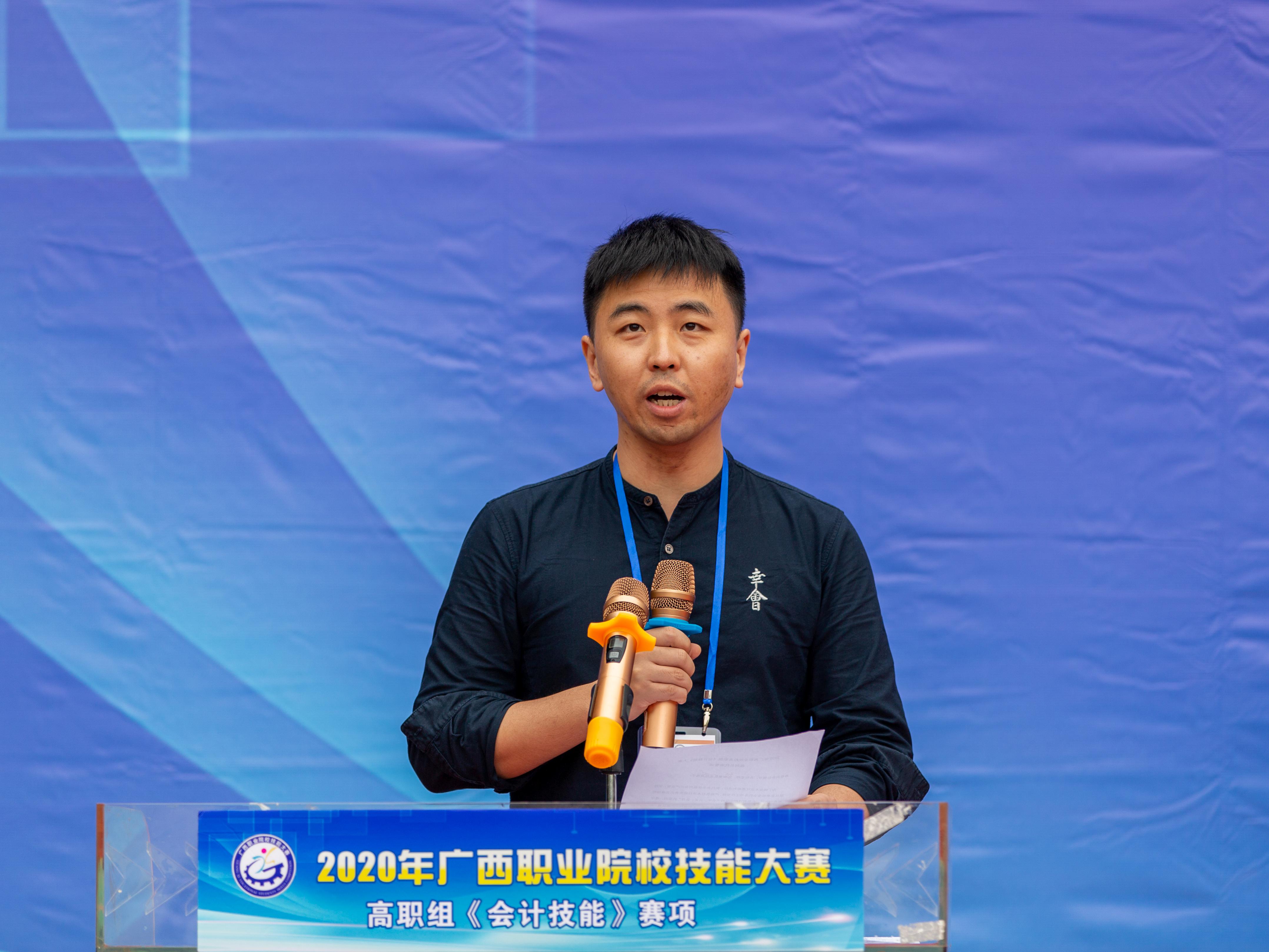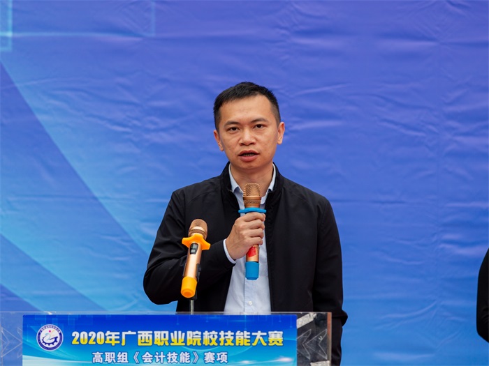 开幕式上,谢沛善副校长为本次大赛致辞,他表示,随着云计算、大数据、人工智能等新一代技术的爆发式发展,数字化、智能化的新浪潮已经到来,传统会计向管理会计转型在所难免,人工智能正在深刻的改变人类的生产和生活方式,会计职业迎来了一个机遇与挑战并存的时代。“会计技能”是会计从业人员的核心职业能力,将“会计技能”列入高职组赛项,不仅是为国赛储备选手,为我区职业院校会计相关专业师生切磋技艺和交流经验提供平台,引领学生磨炼技能、锤炼本领,践行大国“工匠精神”,更重要的是适应广西数字经济产业发展需求,促进我区智慧会计高技能人才的成长成才,为建设壮美广西、共圆复兴梦想贡献力量。同时希望工作人员和裁判员严格遵守竞赛规则,坚持公平、公正、公开的原则,认真负责,一丝不苟,坚守岗位,公正裁判,确保大赛顺利进行。