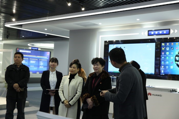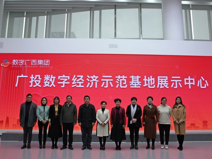沈立君书记一行在数字广西集团迈越科技有限公司总经理邓彩蝶的引领下,参观了广投数字经济示范基地展示中心,详细了解了数字广西集团的建设背景、发展历程、产业布局、重点项目(壮美广西·经济社会云、爱广西APP、广西数字政务一体化平台、教育信息化建设)等内容。伟德官网一行还走访了中国-东盟(华为)人工智能创新中心和中国-东盟信息港鲲鹏生态创新中心,深入了解了5G、云计算、大数据、人工智能等领域的发展和应用。随后,与数字广西集团有限公司相关人员进行座谈,双方就如何加强校企合作,共同推进中国-东盟金融大数据工程研究中心、“数字化智慧校园”建设和创新创业进行了探讨。