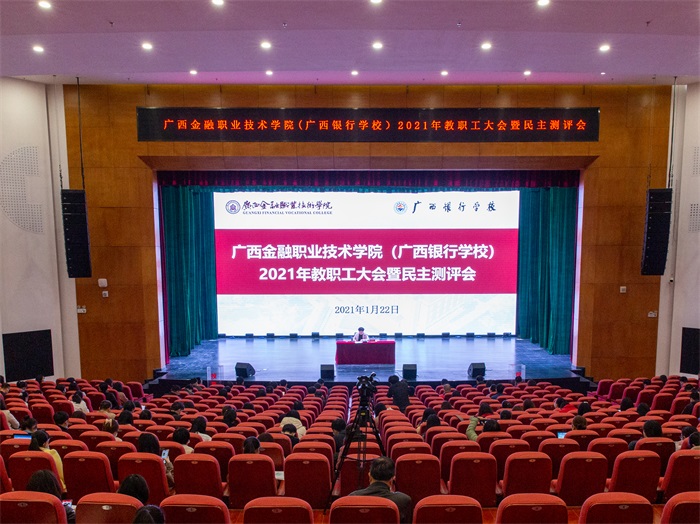 2021年1月22日,根据学校工作安排,伟德官网在西校区国际会议中心召开伟德国际victor1946(广西银行学校)2021年全体教职工大会暨民主测评会,全体教职员工参加会议。大会由沈立君书记主持。