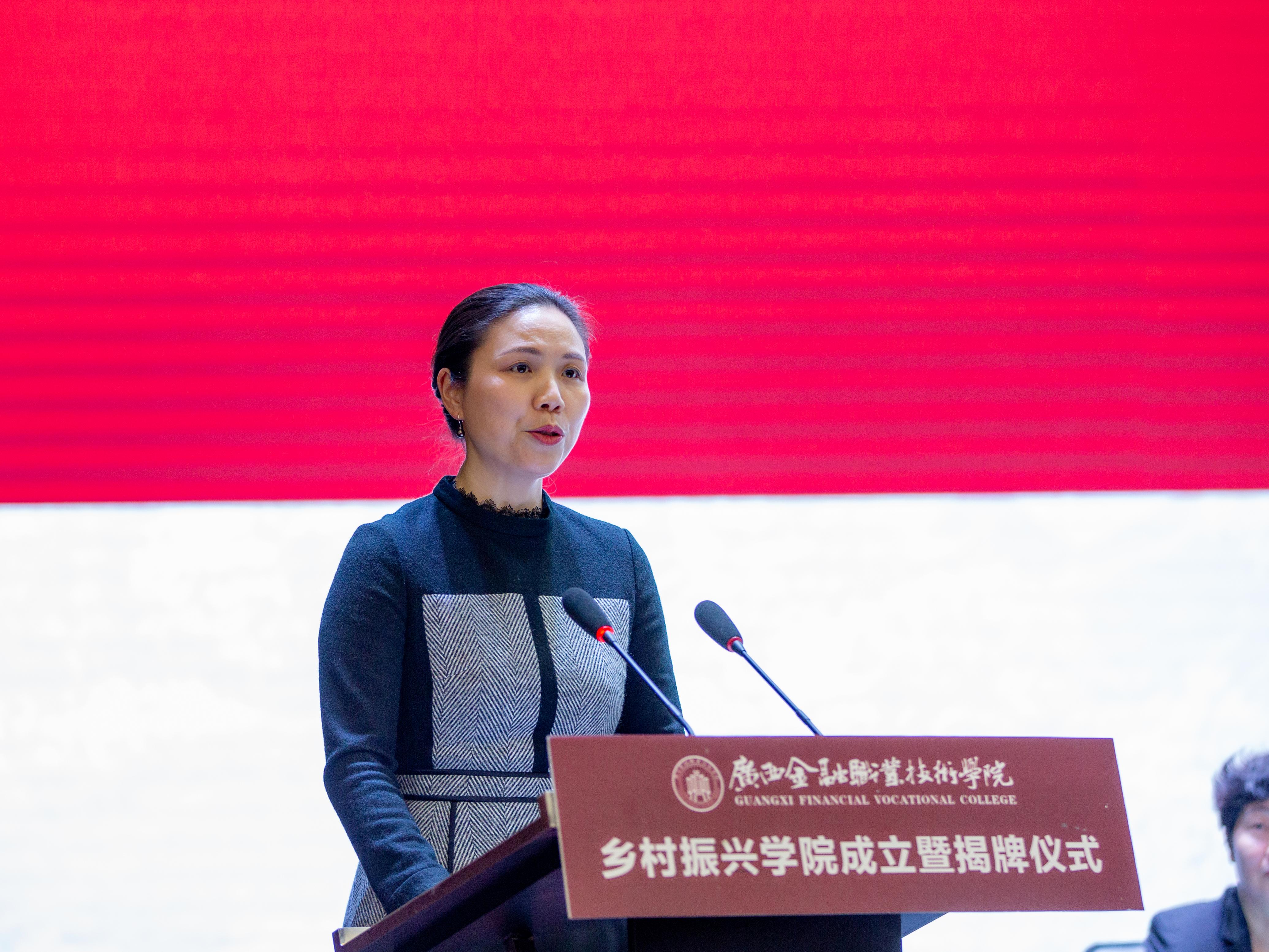 广西壮族自治区教育厅职成处处长覃壮才在致辞中表示,“乡村振兴学院”在伟德国际victor1946正式成立,相信这是金融职院乃至整个教育领域在乡村振兴中的重要尝试,是金融职院快速响应国家战略,进一步加强农业农村等人才急需领域的职业教育供给,为乡村振兴提供人才、知识与技能等多方面支持。为我们做好有效衔接,推进乡村振兴带了一个好头!自治区教育厅作为主管部门,将给予大力支持,积极为”乡村振兴学院“开展工作创造条件,营造宽松、高效、便利的良好环境,并祝愿”乡村振兴学院“取得瞩目的成绩。