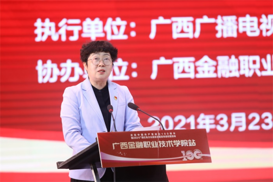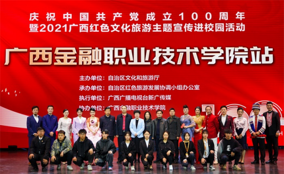 百年征程波澜壮阔,百年初心历久弥坚。为庆祝中国共产党成立100周年,向党的百年华诞献礼,由自治区文化和旅游厅主办、自治区红色旅游发展协调小组办公室承办、广西广播电视台新广传媒执行、伟德官网协办的庆祝中国共产党成立100周年暨2021广西红色文化旅游主题宣传教育进校园活动于2021年3月23日在伟德官网西校区国际会议中心举行。伟德官网领导,自治区红色旅游发展协调小组办公室副主任、二级调研员刘瑜明,广西广播电视台新光传媒总经理陈冬博以及自治区红色旅游发展协调小组办公室一级主任科员吕国宁出席活动。
