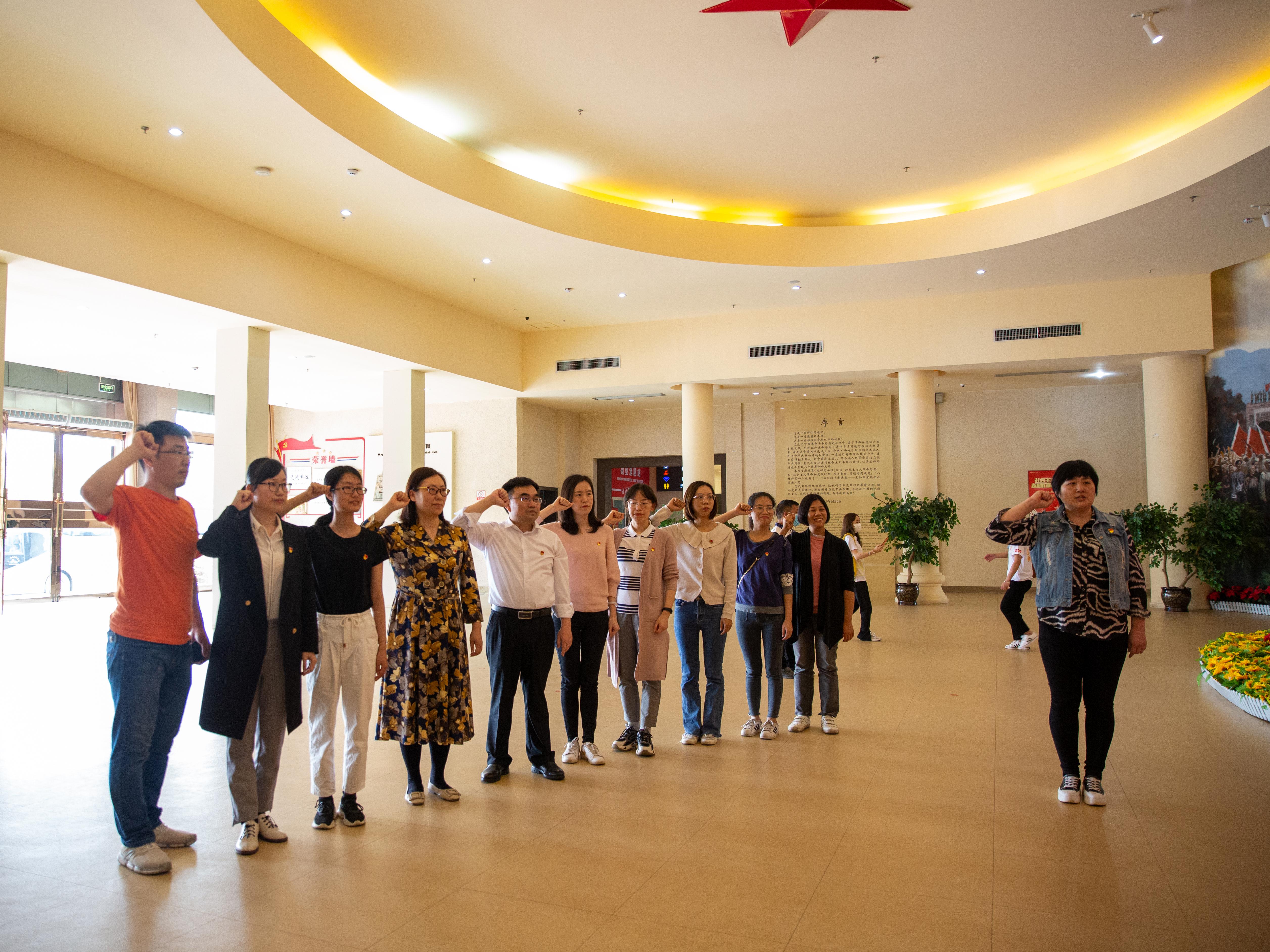随后,全体党员来到广西革命纪念馆参观,在序厅重温了入党誓词。面对鲜红的党旗,在支部书记韩蓓丽同志的领誓下,党员们举起右手,重温入党誓词,“我志愿加入中国共产党,拥护党的纲领,遵守党的章程……”一字一句,声音洪亮,慷慨激昂,表达了为党的事业奋斗终身的信念与决心。党员们深刻感受到了革命先辈们崇高的思想境界,坚定的理想信念,巨大的人格力量和浩然的革命正气。