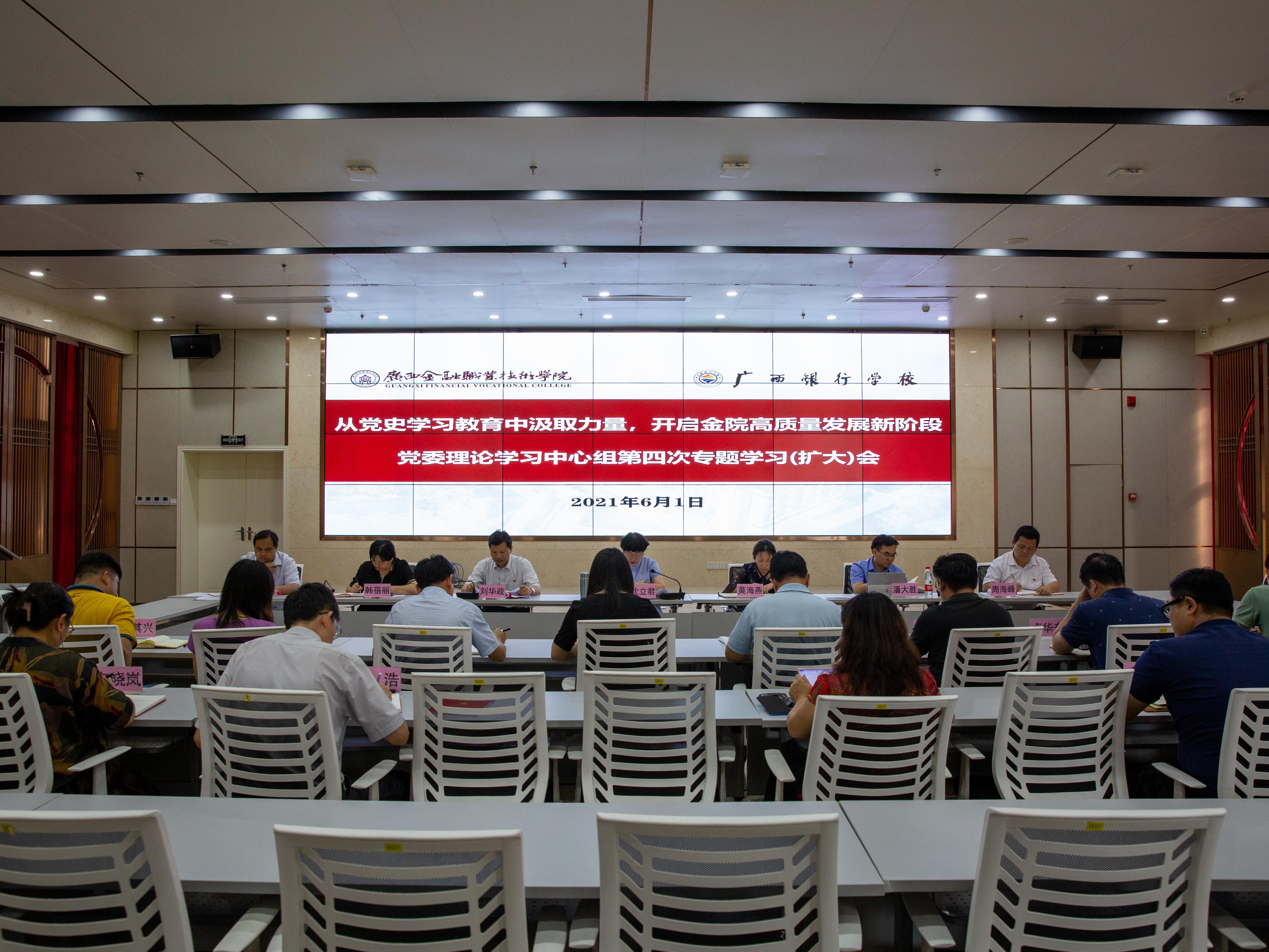 6月1日下午,伟德官网党委理论学习中心组以“从党史学习教育中汲取力量,开启金院高质量发展新征程”为主题,在西校区道德大讲堂召开2021年第四次专题学习(扩大)会。进行党史学习教育——社会主义革命和建设时期专题,同时深入学习习近平总书记关于国家安全、统战和民族宗教工作的重要论述、习近平总书记关于发扬斗争精神、防范风险挑战的重要论述、教师思想政治和师德师风建设经验交流暨师德专题教育启动部署会以及全国2021届高校毕业生就业工作网络视频会议精神。会议由党委书记沈立君主持。