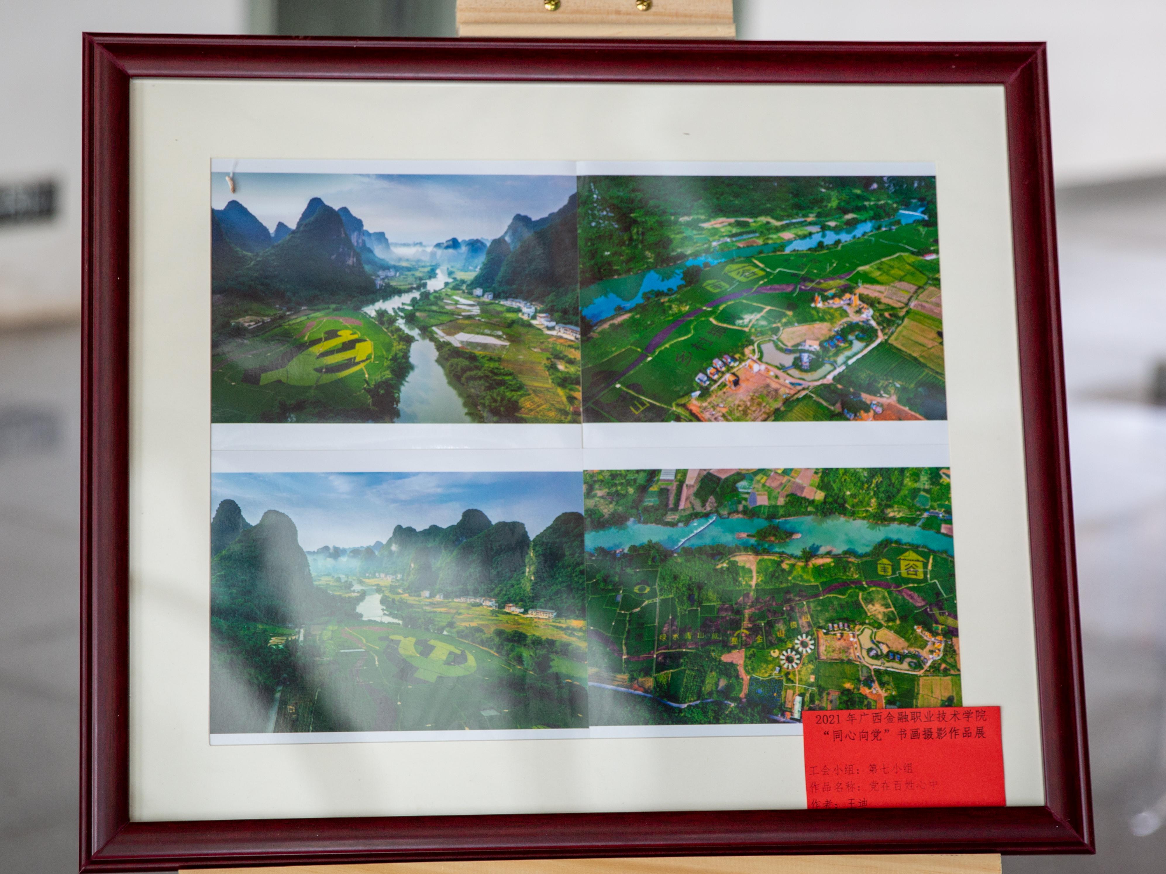 本次展览共展出21幅书法、绘画和摄影作品。评选出一等奖1名、二等奖3名,三等奖6名,优秀奖11名。其中王建国老师的书法作品《习近平在党史学习教育动员会上的讲话》、《求客观、务执政对联》分获一等奖、二等奖,禹志远老师的绘画作品《壮乡新貌》、孟菁璐老师的绘画作品《走进新时代》获得二等奖。