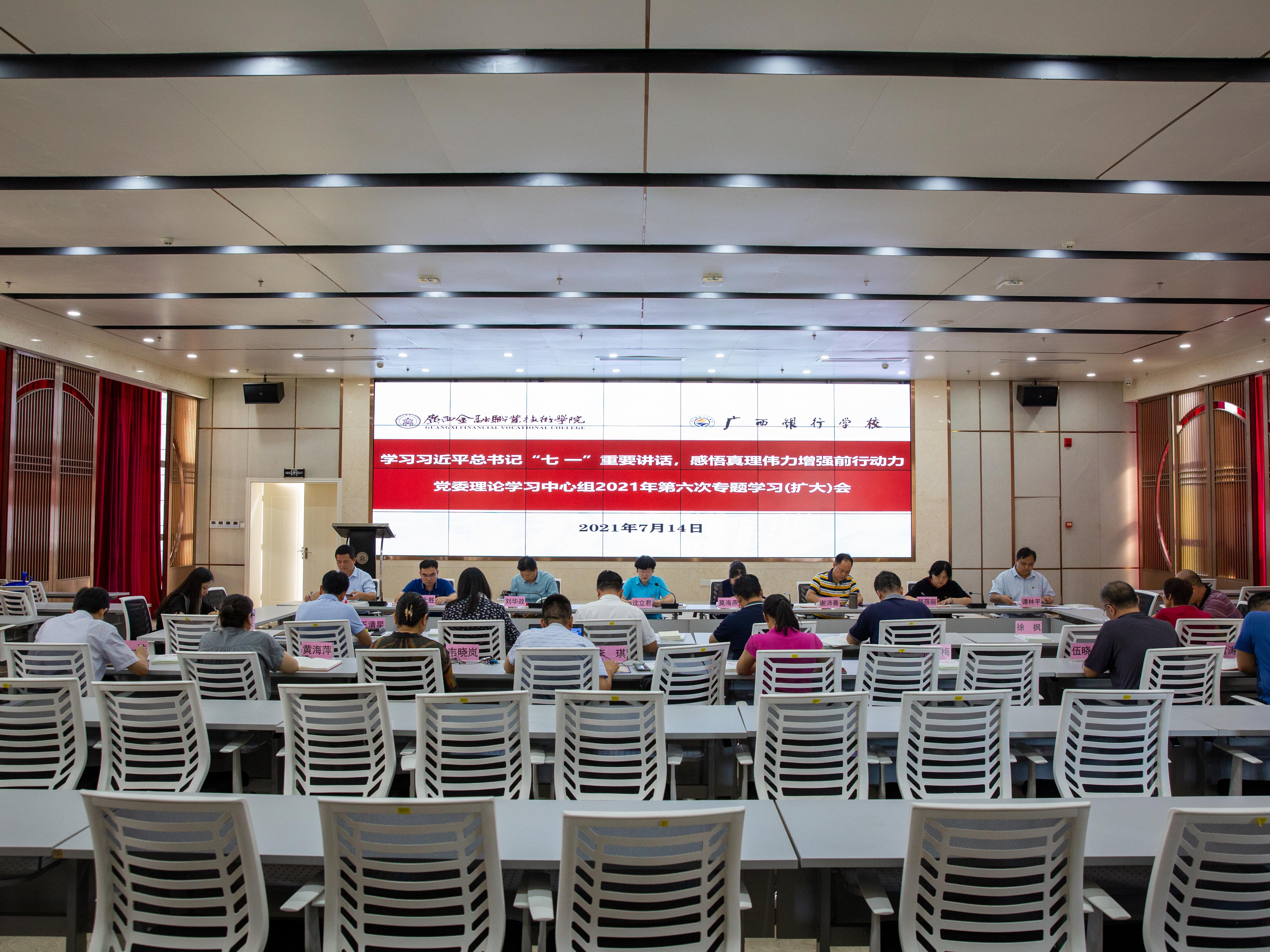 7月14日下午,伟德官网党委理论学习中心组在西校区道德大讲堂召开2021年第六次专题学习(扩大)会。会议以《学习习近平总书记“七一”重要讲话,感悟真理伟力增强前行动力》为主题,深入学习贯彻习近平总书记在庆祝中国共产党成立100周年大会上的重要讲话精神。党委理论学习中心组成员、学校领导、各党支部书记及各单位负责人参加了会议,会议由党委书记沈立君主持。