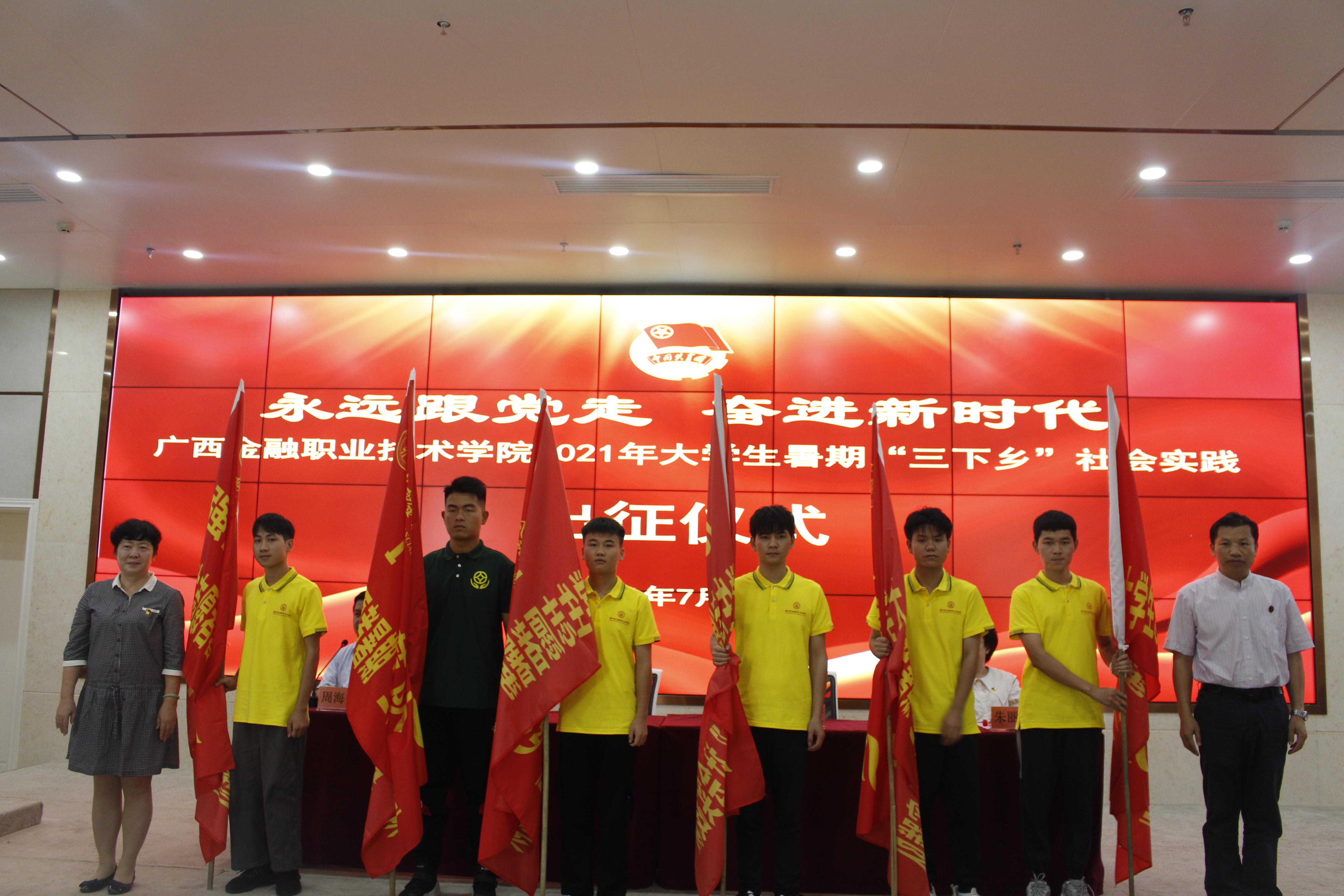 为深入贯彻习近平总书记视察广西的重要讲话精神和重要指示精神,贯彻落实习近平总书记关于青年工作的重要思想,引导和帮助伟德官网青年在社会课堂中受教育、长才干、作贡献,在观察实践中学党史、强信念、跟党走,努力成为担当民族复兴大任的时代新人,以实际行动庆祝中国共产党成立100 周年。2021年7月17日上午,伟德官网“永远跟党走 奋进新时代”2021年大学生暑期“三下乡”社会实践出征仪式在西校区国际会议中心举行。校党委书记沈立君,校党委副书记、纪委书记刘华政出席出征仪式。仪式由学生工作与招生就业处副处长、校团委书记周海峰主持。