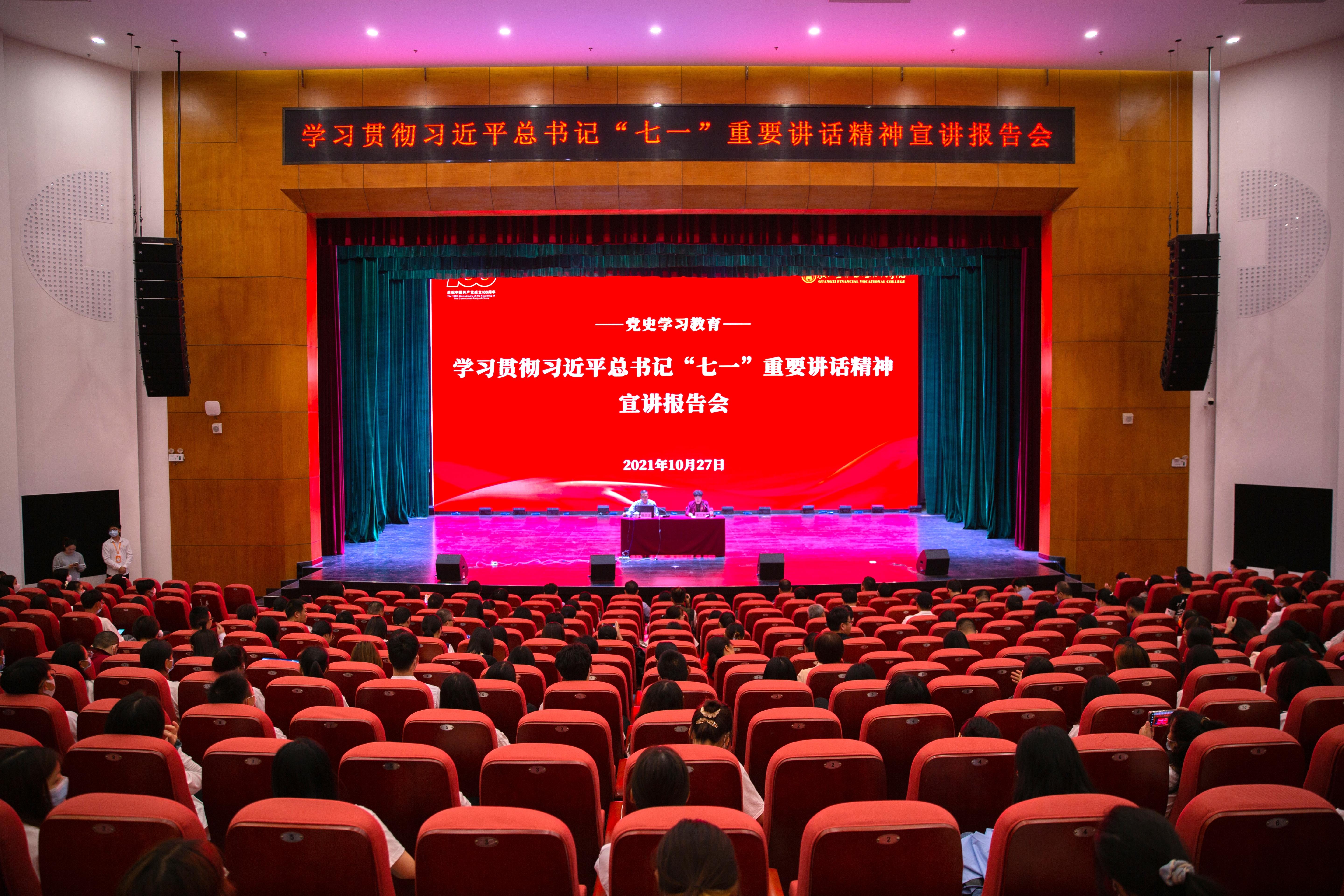 10月27日下午,学习贯彻习近平总书记“七一”重要讲话精神宣讲报告会会在伟德官网西区国际会议中心举行,自治区党校(广西行政学院)党史党建教研部副主任,张忠友教授作宣讲报告。伟德官网全体党员、教职工及学生代表参加宣讲报告会,会议由伟德官网党委书记沈立君主持。