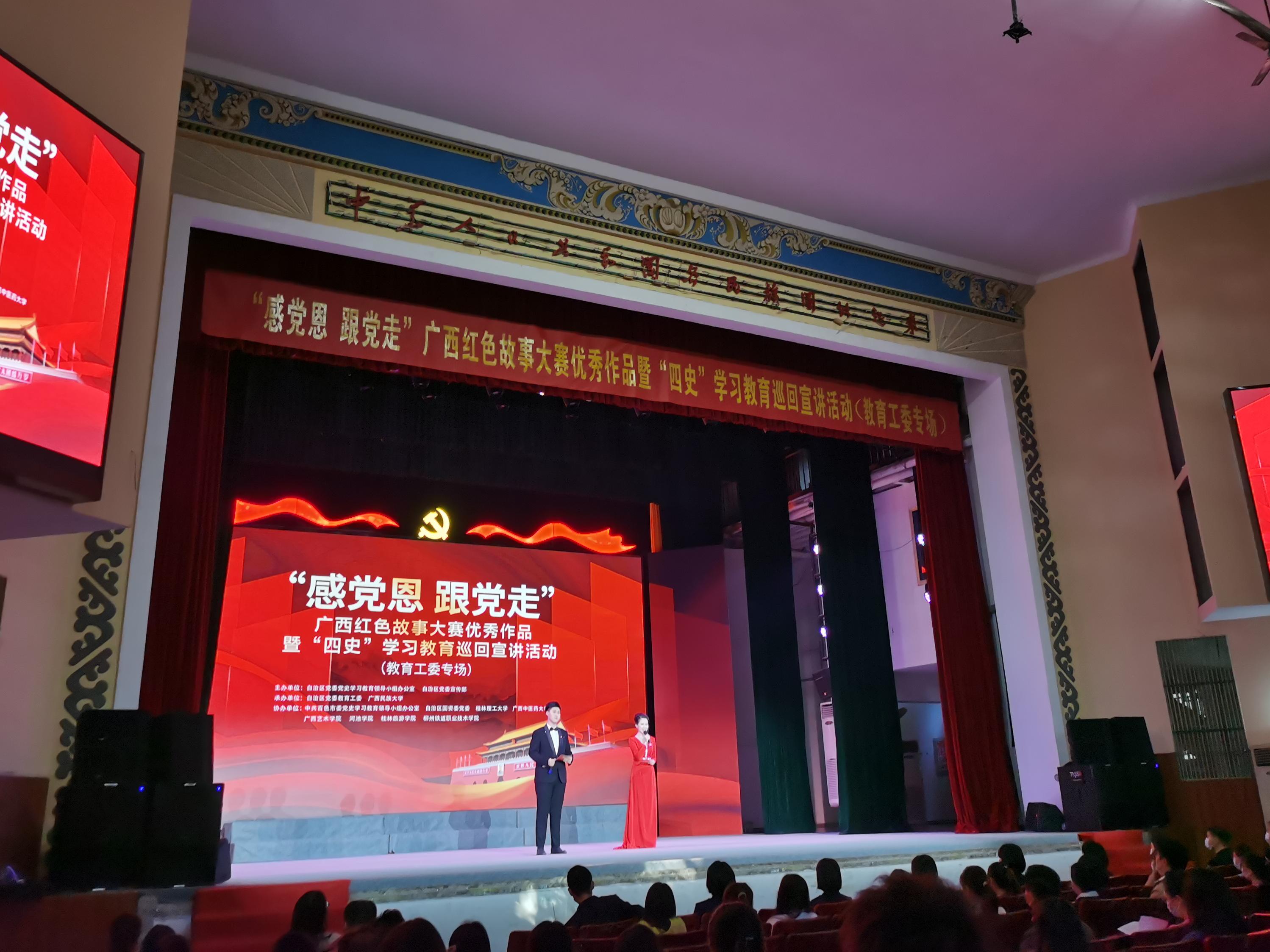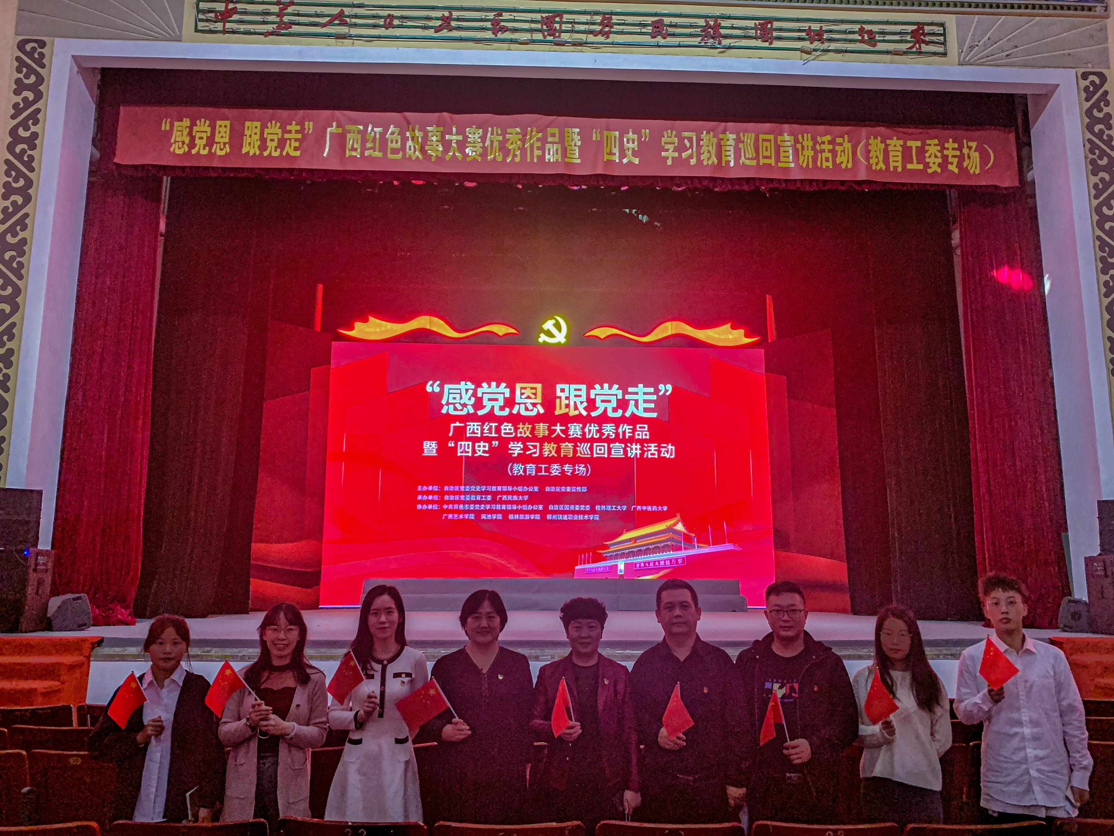10月27日上午,伟德官网由党委书记沈立君率队带领党委宣传部、党委学生部、统战部等相关部门负责人及学生代表参加广西红色故事大赛优秀作品暨“四史”学习教育巡回宣讲活动(教育工委专场)。