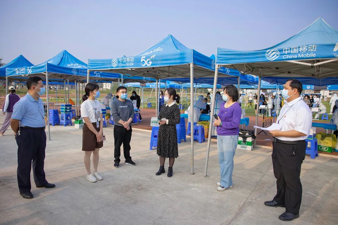 学校领导高度重视核酸检测工作,前往采集点查看准备情况并进行检查指导,向进行核酸采样的医务人员和师生志愿者表示慰问,详细询问了现场工作情况。