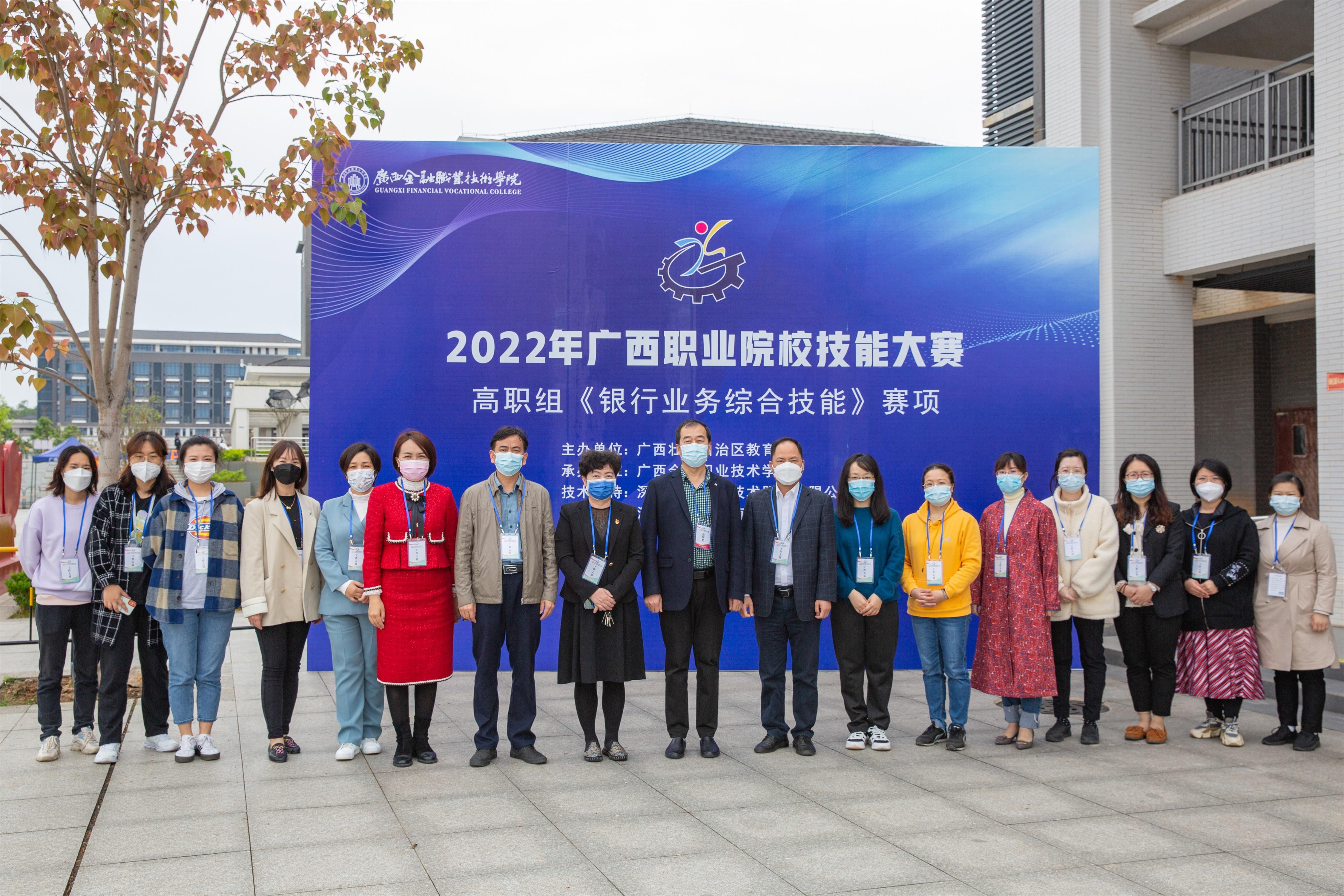 2022年4月19日广西职业院校技能大赛高职组《银行业务综合技能》赛项在伟德官网西校区举行。伟德官网党委书记沈立君、副院长谢沛善、大赛总裁判长罗延博、金融系主任王清星以及各参赛院校师生代表参加本次赛项活动。