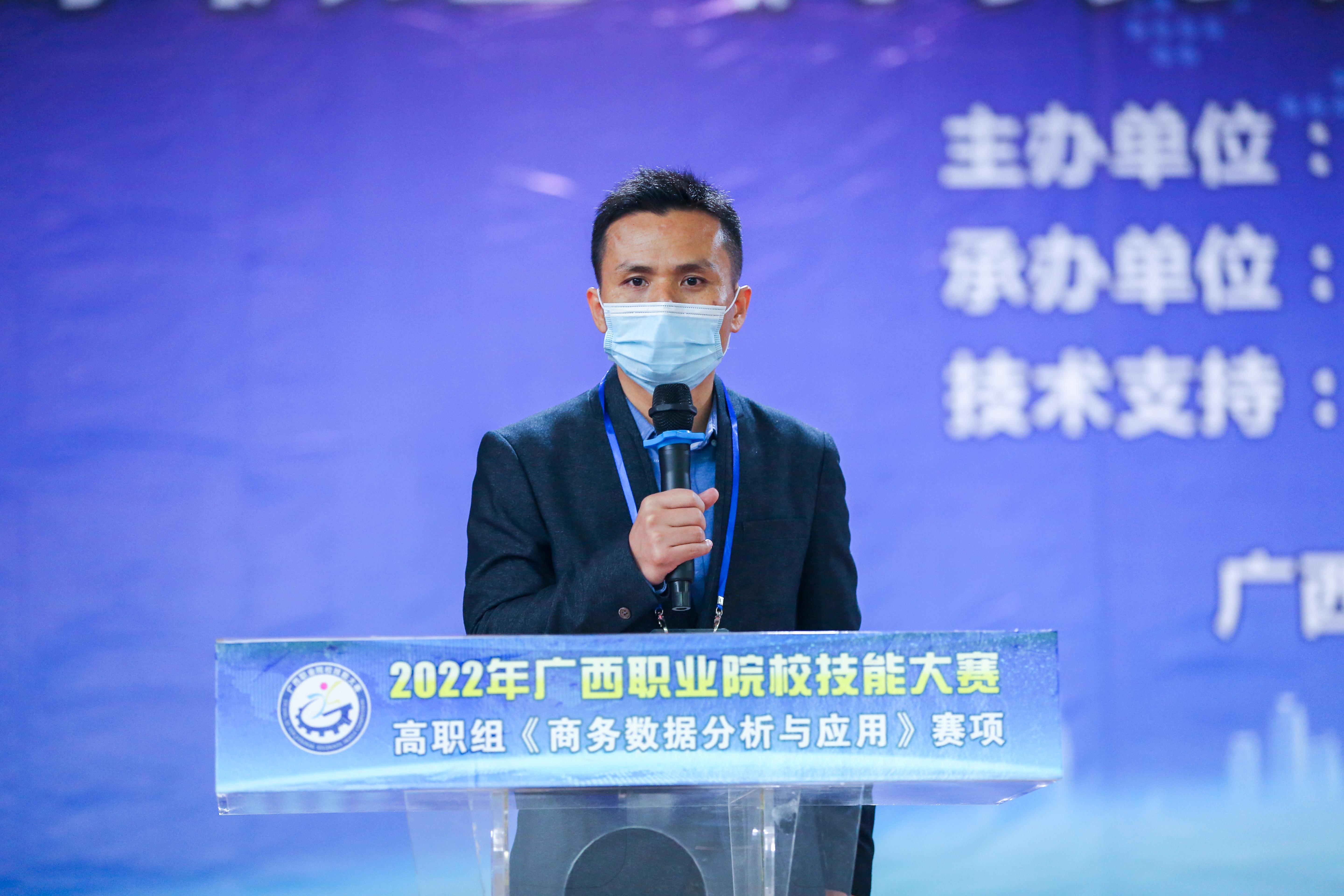 2022年4月18日广西职业院校技能大赛高职组《商务数据分析与应用》赛项在伟德官网东校区成功举办。伟德官网经济管理系主任卢华东、竞赛裁判长卢志翔以及参赛院校师生代表参加本次赛项活动。