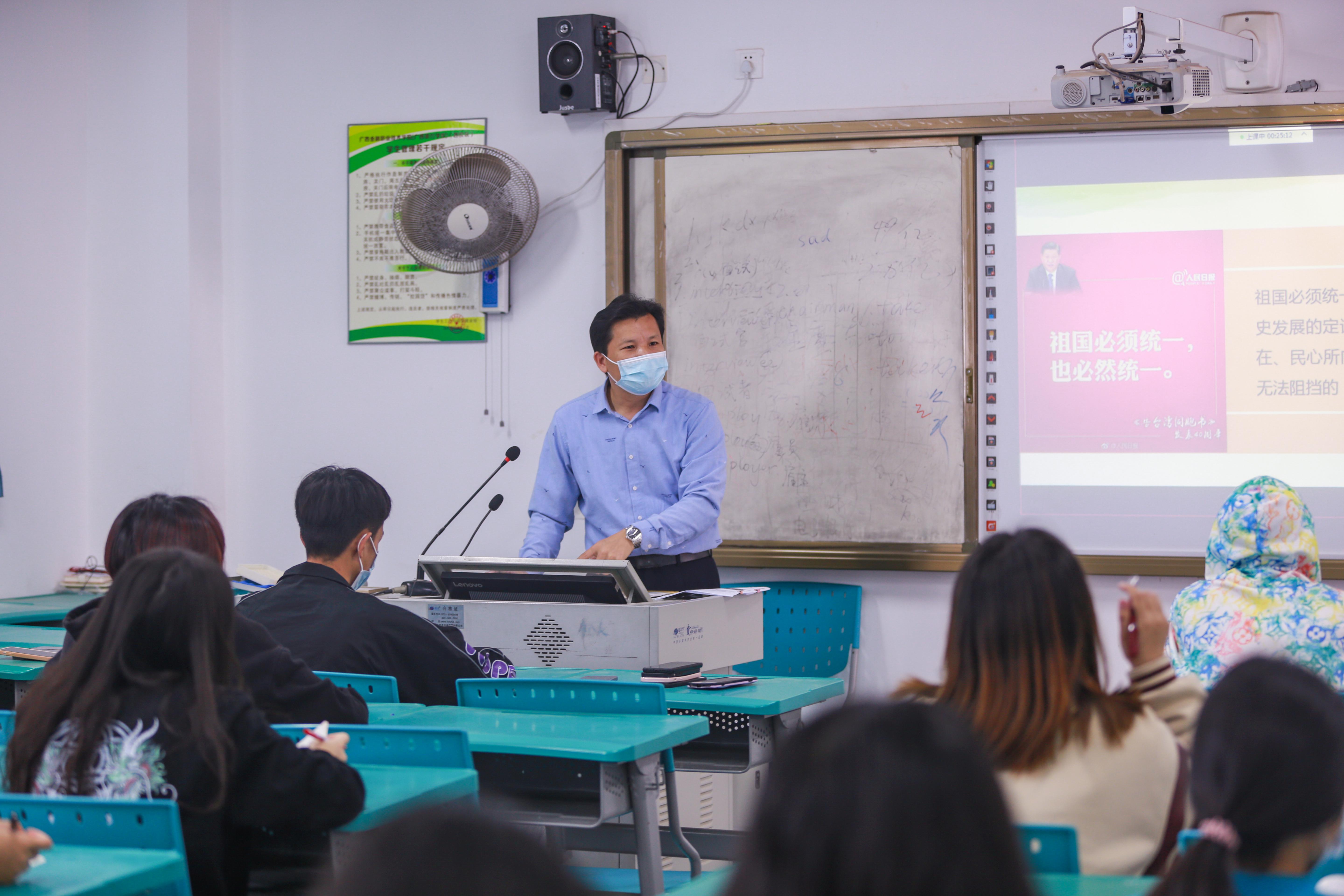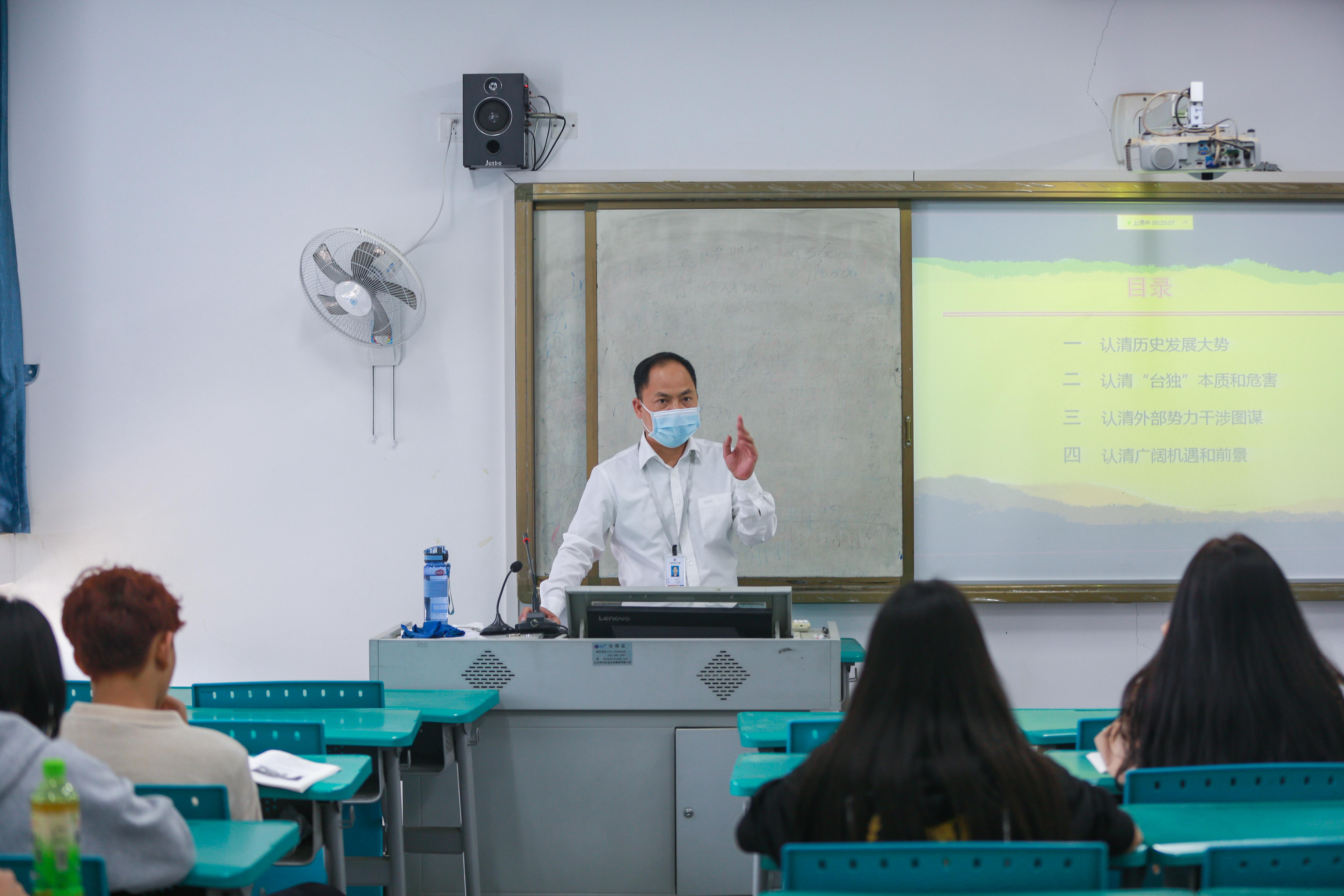 学校领导围绕“百年奋斗谋复兴 勇毅前行兴伟业”和“站在历史正确一边 共创祖国统一伟业”两大主题为同学们进行了一次生动的思想教育。帮助学生认清国内外形势,教育和引导学生全面而准确地理解党的路线、方针和政策,坚定不移走中国特色社会主义道路的信心和决心。深厚的理论知识、丰富的实践案例和深入浅出的语言,受到了学生的喜爱和欢迎。