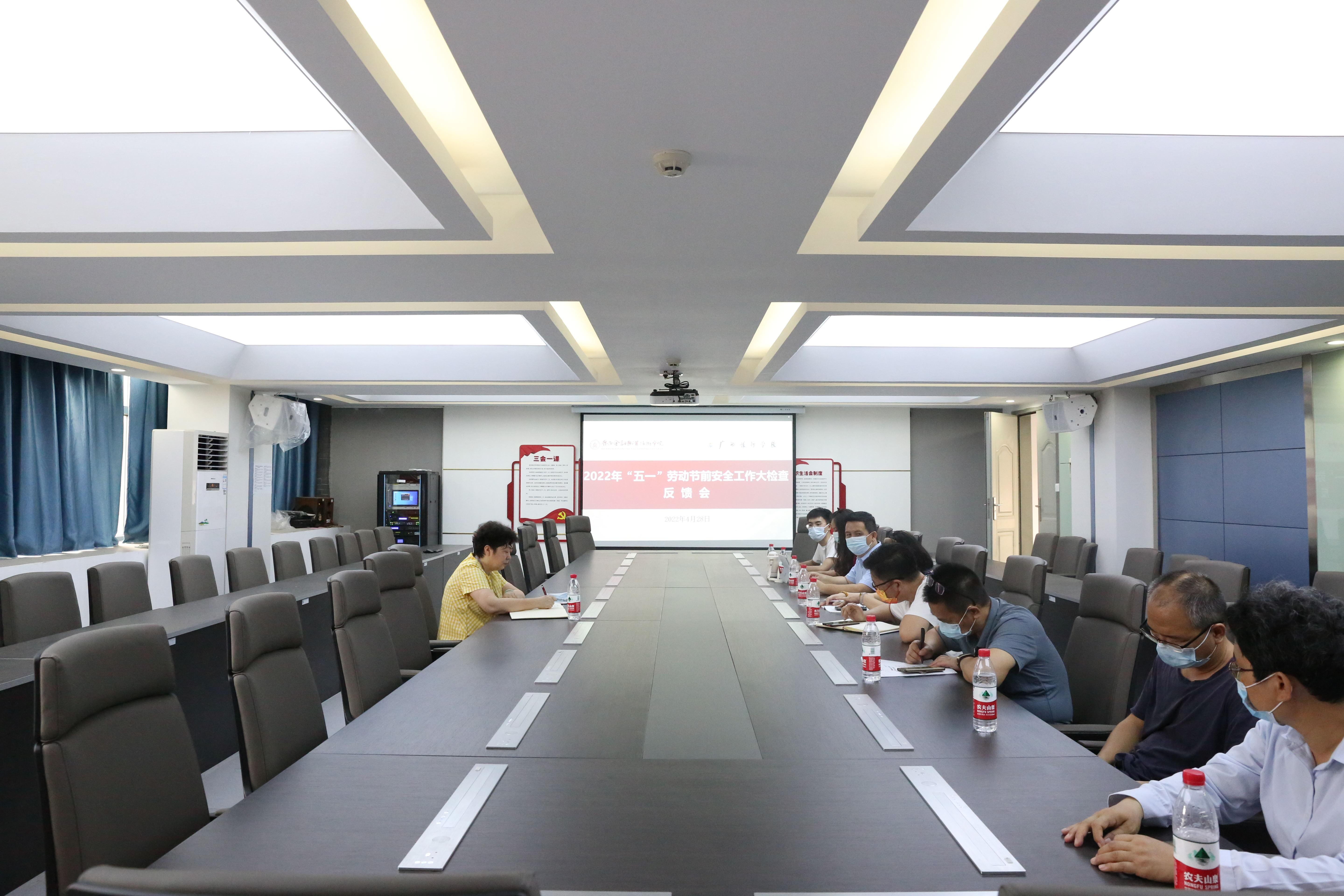 校领导在反馈会中指出,校园安全稳定是一切工作的基础,各单位必须严格落实安全主体责任,积极组织开展安全自查,召开主题班会,强调假期安全注意事项,认真落实疫情防控措施。加强校园安全管理,严控校门关,落实师生外出审批报备制度,精准掌握师生出行动态。在工作开展过程中时刻保持高度的警惕性和责任心,杜绝麻痹大意、思想放松、工作放空,做到安全隐患及时发现并消除,保证每一项工作落实落细落小,同时做好师生员工后勤服务和人文关怀工作,确保校园安全和谐稳定。