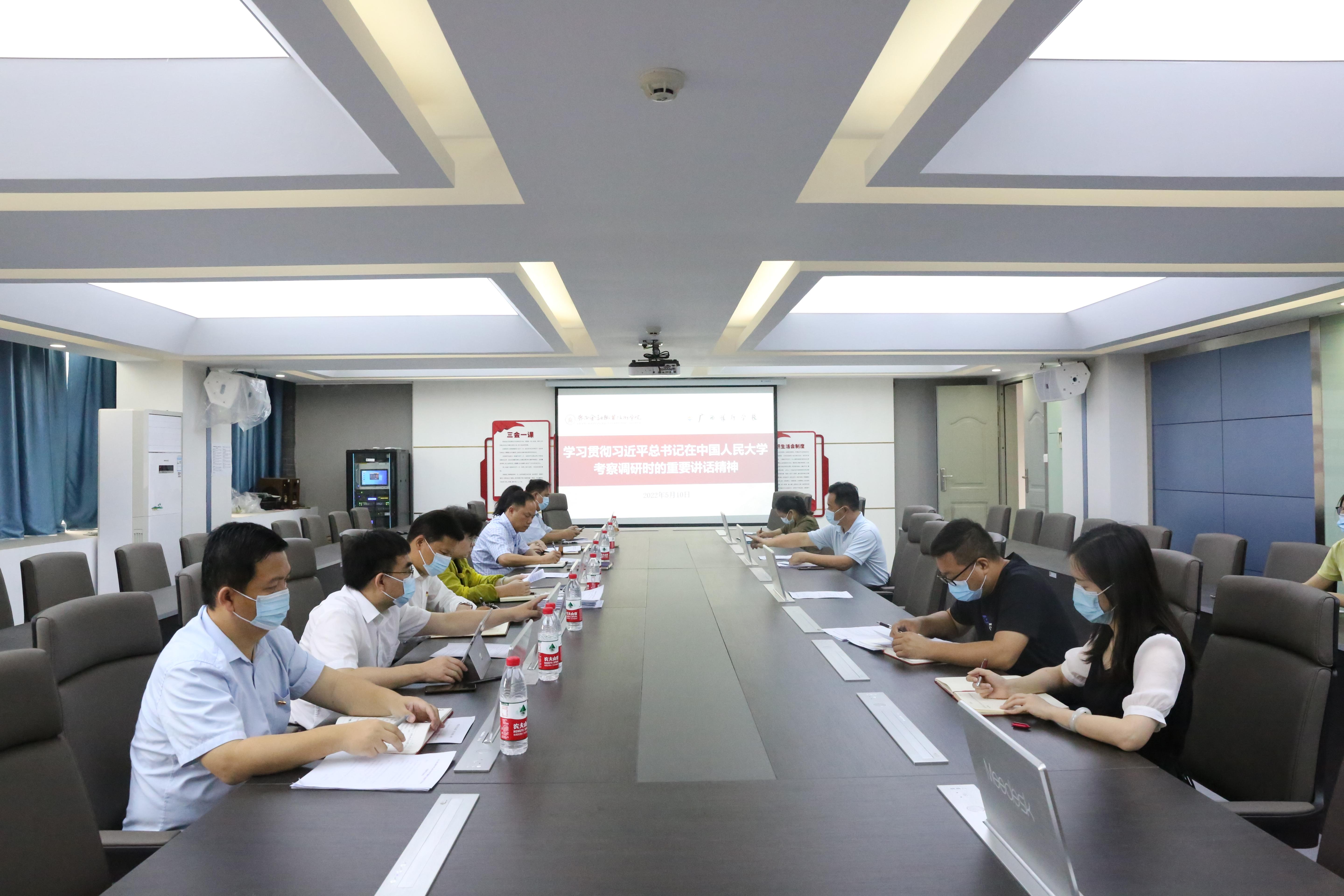 5月10日上午,学校在西校区512会议室召开党委扩大会议,专题学习贯彻习近平总书记在中国人民大学考察调研时的重要讲话精神。学校领导、党委委员、党委宣传部、组织人事处、纪检监察室相关负责人参加会议。党委书记沈立君主持会议并讲话。