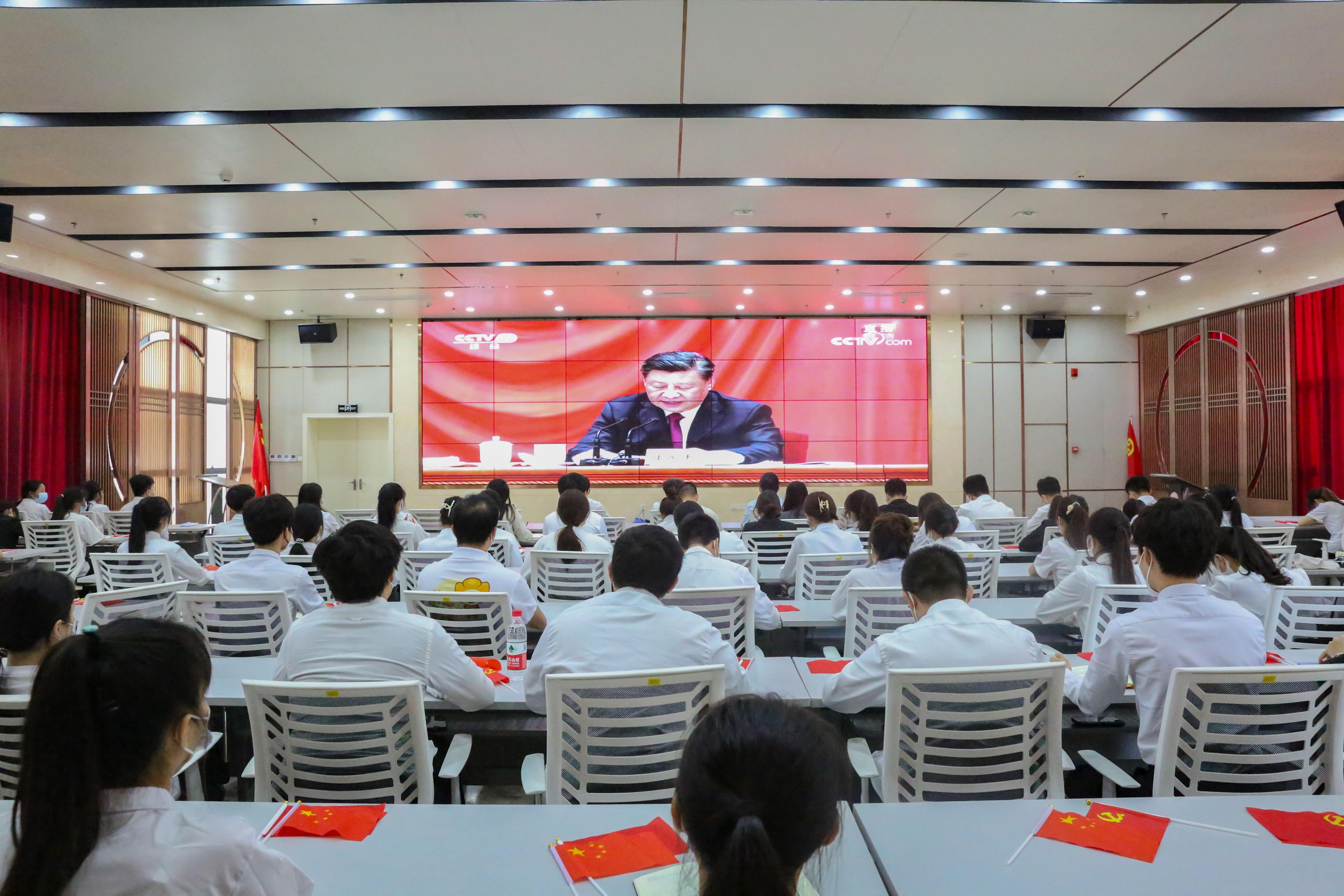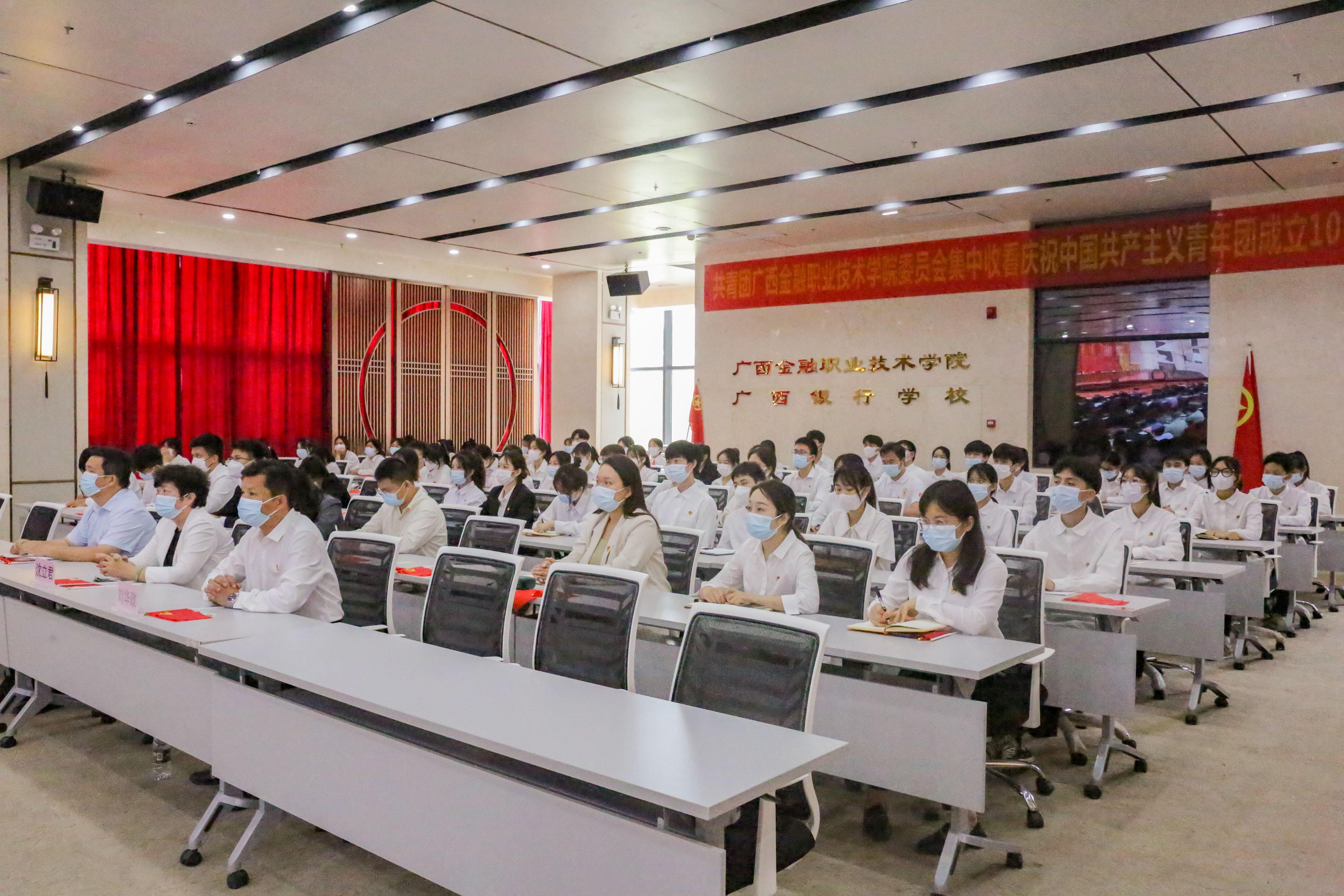 伟德官网师生在道德大讲堂集中收看了庆祝中国共产主义青年团成立100周年大会,学校党委书记沈立君,学校党委副书记、纪委书记刘华政、学校党委委员、学生工作与招生就业处副处长、校团委书记周海峰与70余名青年教师代表、各级团学组织学生代表共同收看大会直播。伟德官网6个系部组织青年教师、青年学生通过电视、网络等多种渠道认真收看大会盛况。