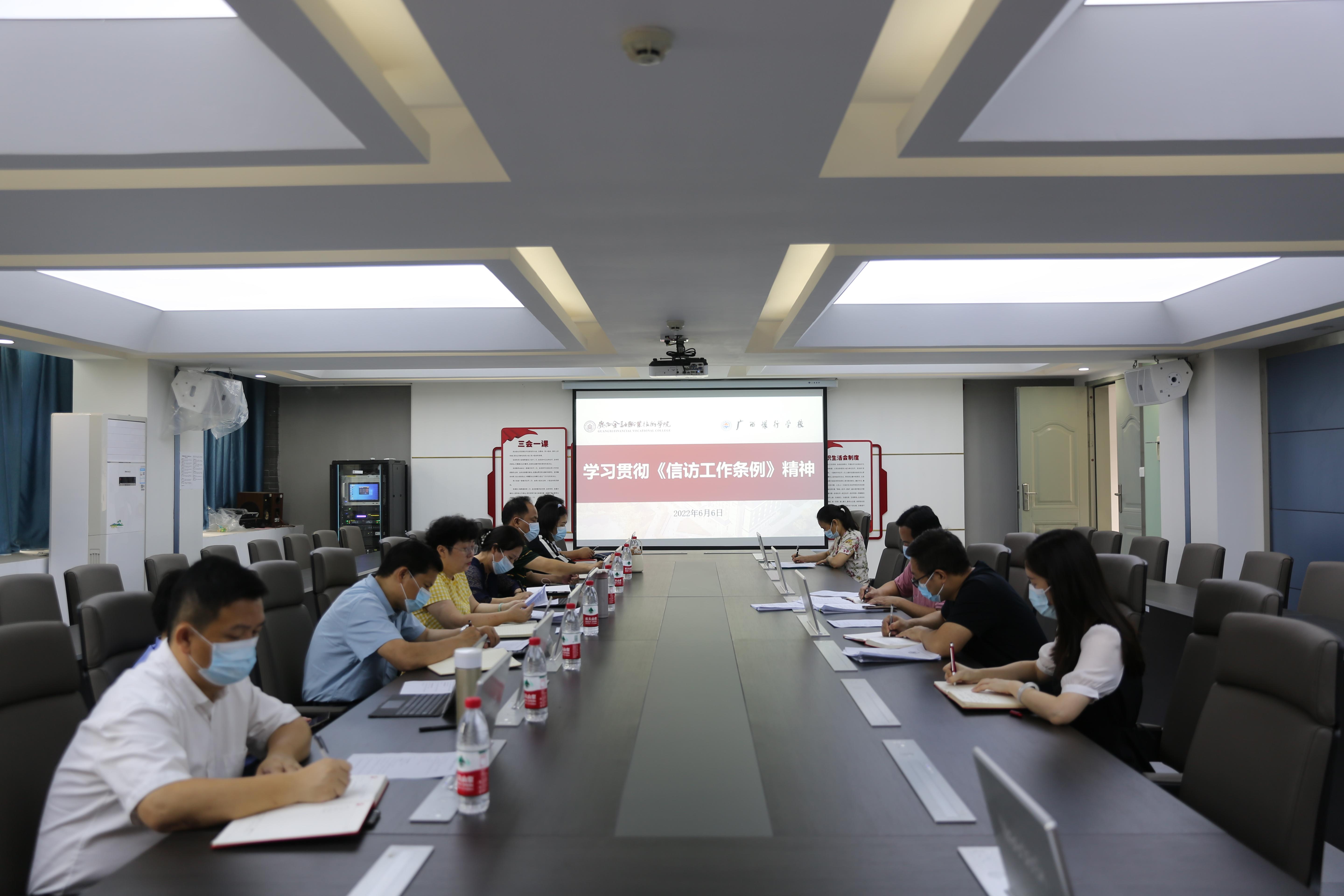 会议要求,一要提升政治站位,切实加强对《条例》贯彻落实工作的组织领导。二要加强宣传培训,积极引导广大师生对《条例》规定入心入脑、见行见效。三要健全领导体制,着力构建新时代信访工作的新格局。伟德官网师生要全面了解《条例》的主要内容和规范要求,增强各级干部做好信访工作的自觉性与责任感,教育引导师生依法有序理性表达利益诉求,为《条例》的实施创造良好的舆论氛围,在全校营造办事依法、遇事找法、解决问题用法、化解矛盾靠法的良好环境。