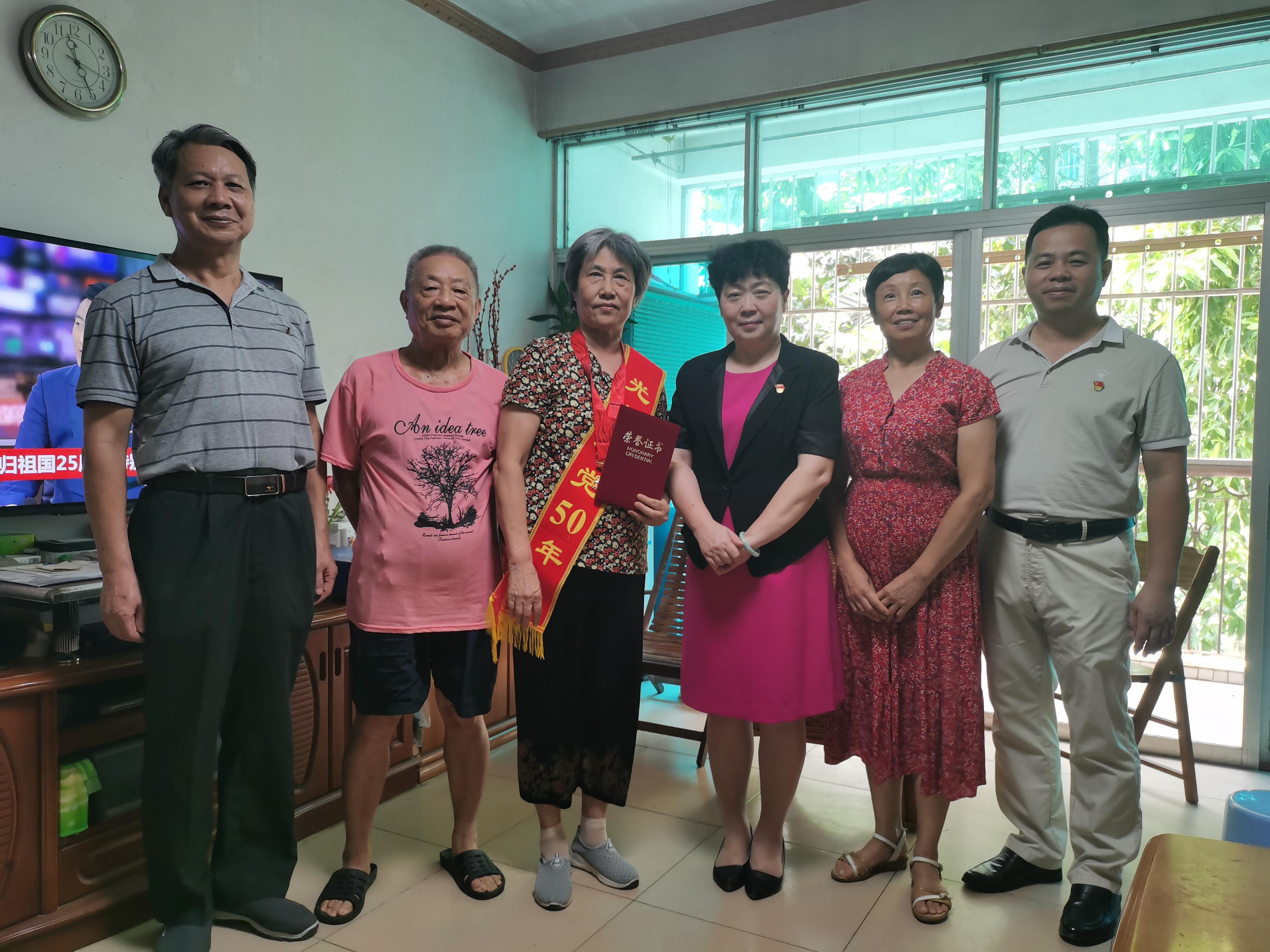 2022年7月1日上午,学院党委书记沈立君带队看望慰问老党员,并为老党员颁发“光荣在党50年”纪念章、荣誉证书及绶带,并代表学院党委向老同志致以“七一”节日问候,为他们送去党组织的关怀和温暖。