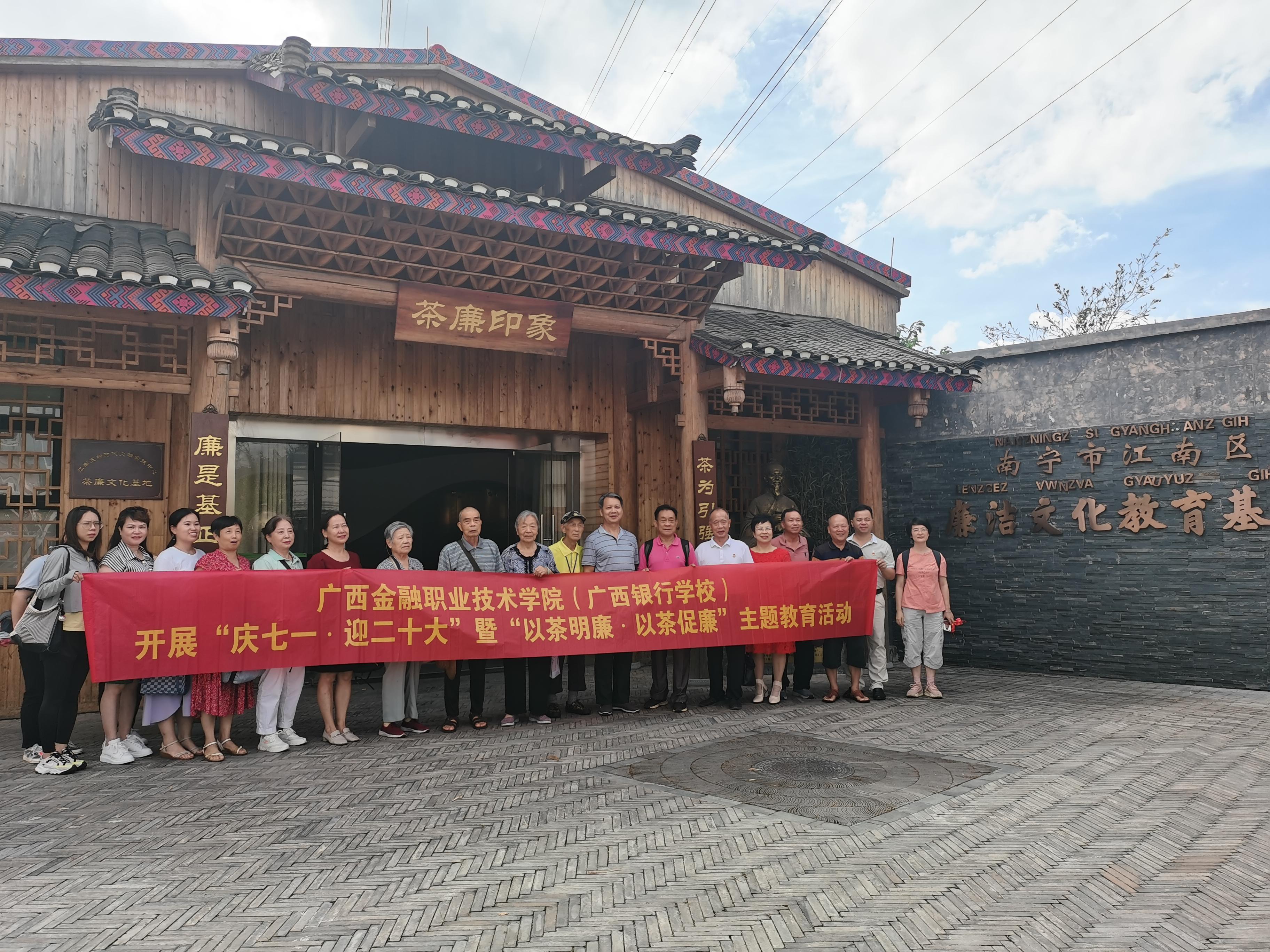 7月1日上午,伟德官网退休党支部与直属第一党支部党员到江南区廉洁文化教育基地开展“庆七一∙迎二十大”暨“以茶明廉∙以茶促廉”主题教育,旨在进一步贯彻落实清廉学校建设任务,不断增强党员干部廉洁自律意识,筑牢拒腐防变的思想防线。
