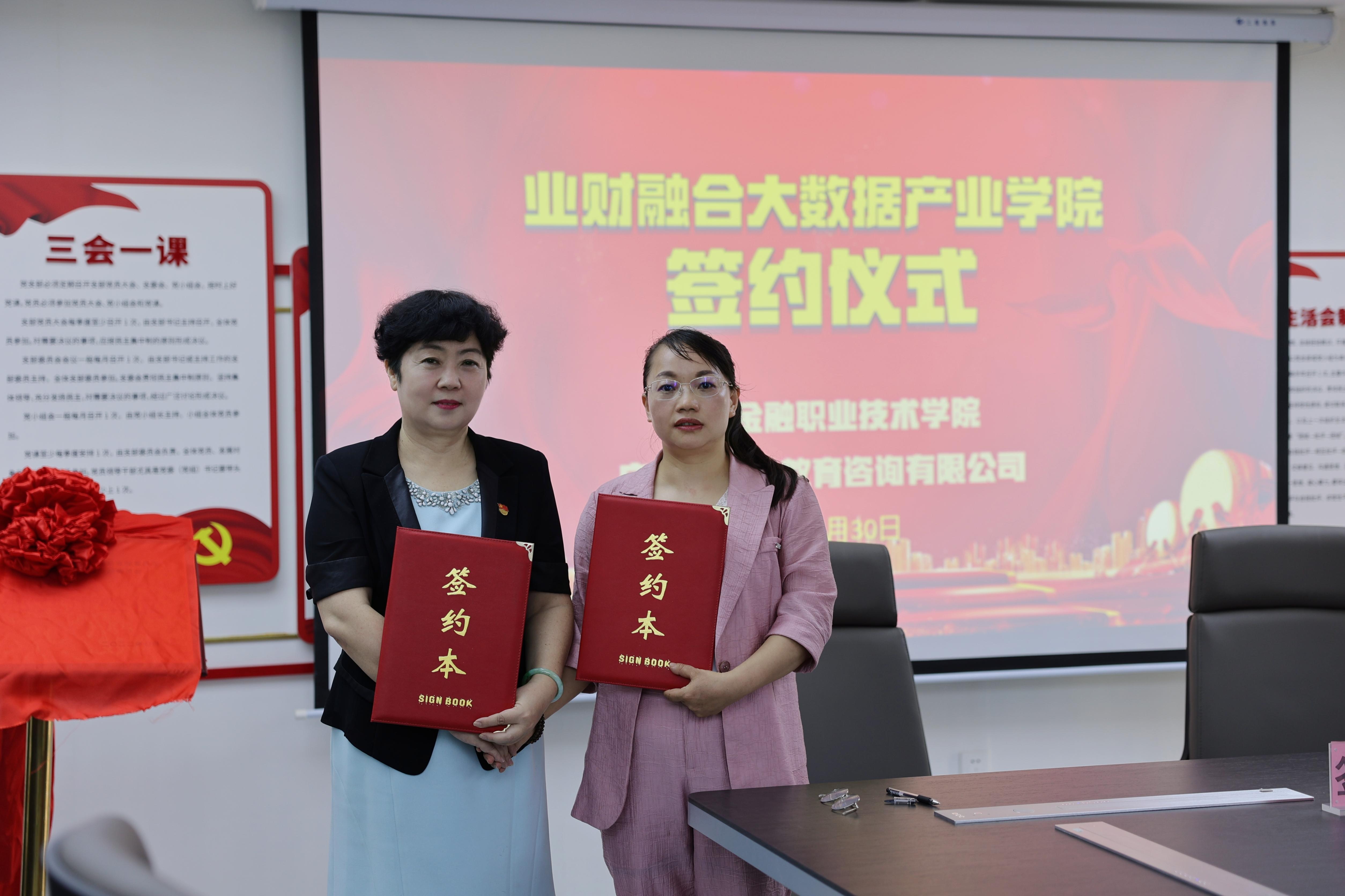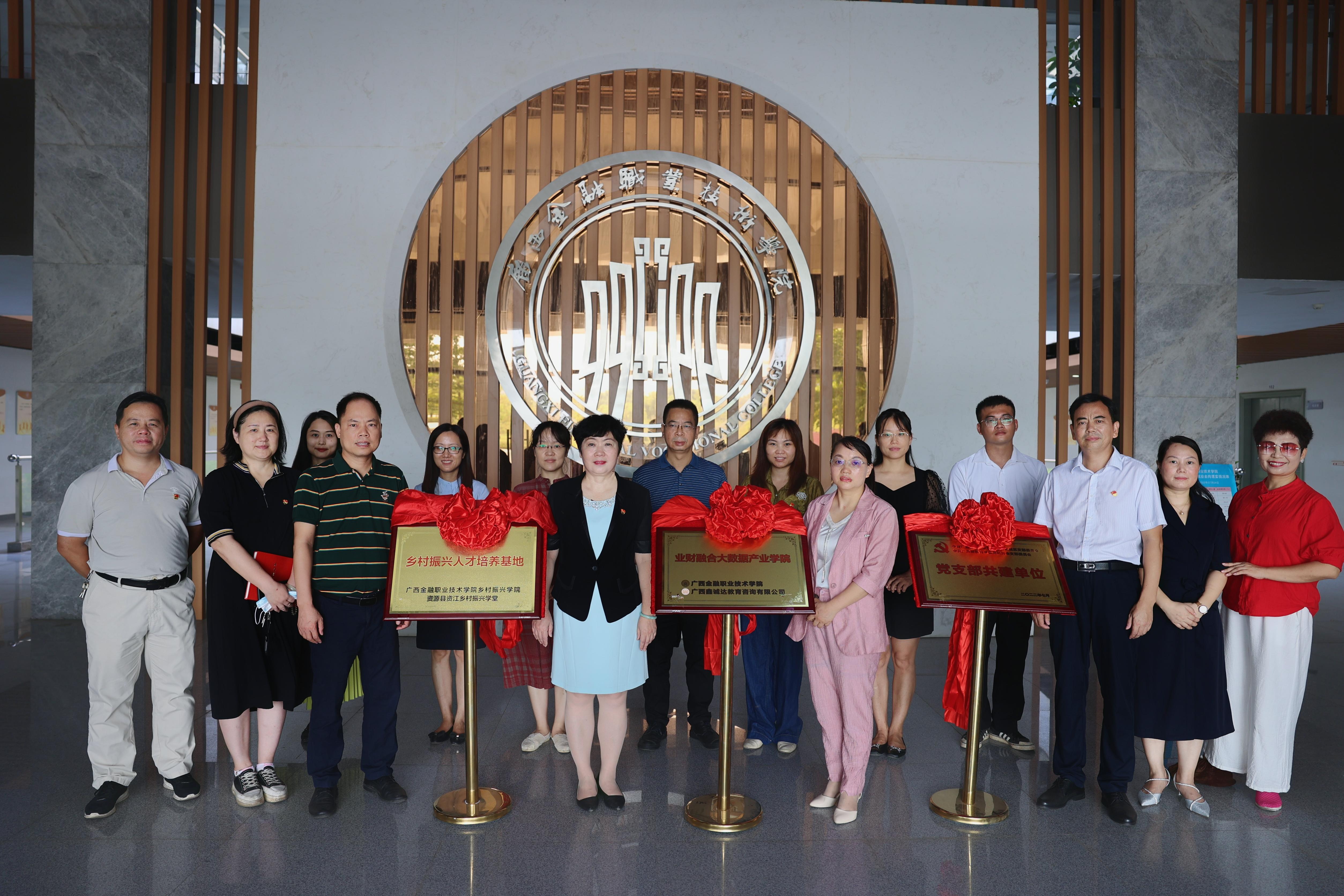 随后双方共同为“业财融合大数据产业学院”“乡村振兴人才培养基地”和“党建共建单位”签约并揭牌。