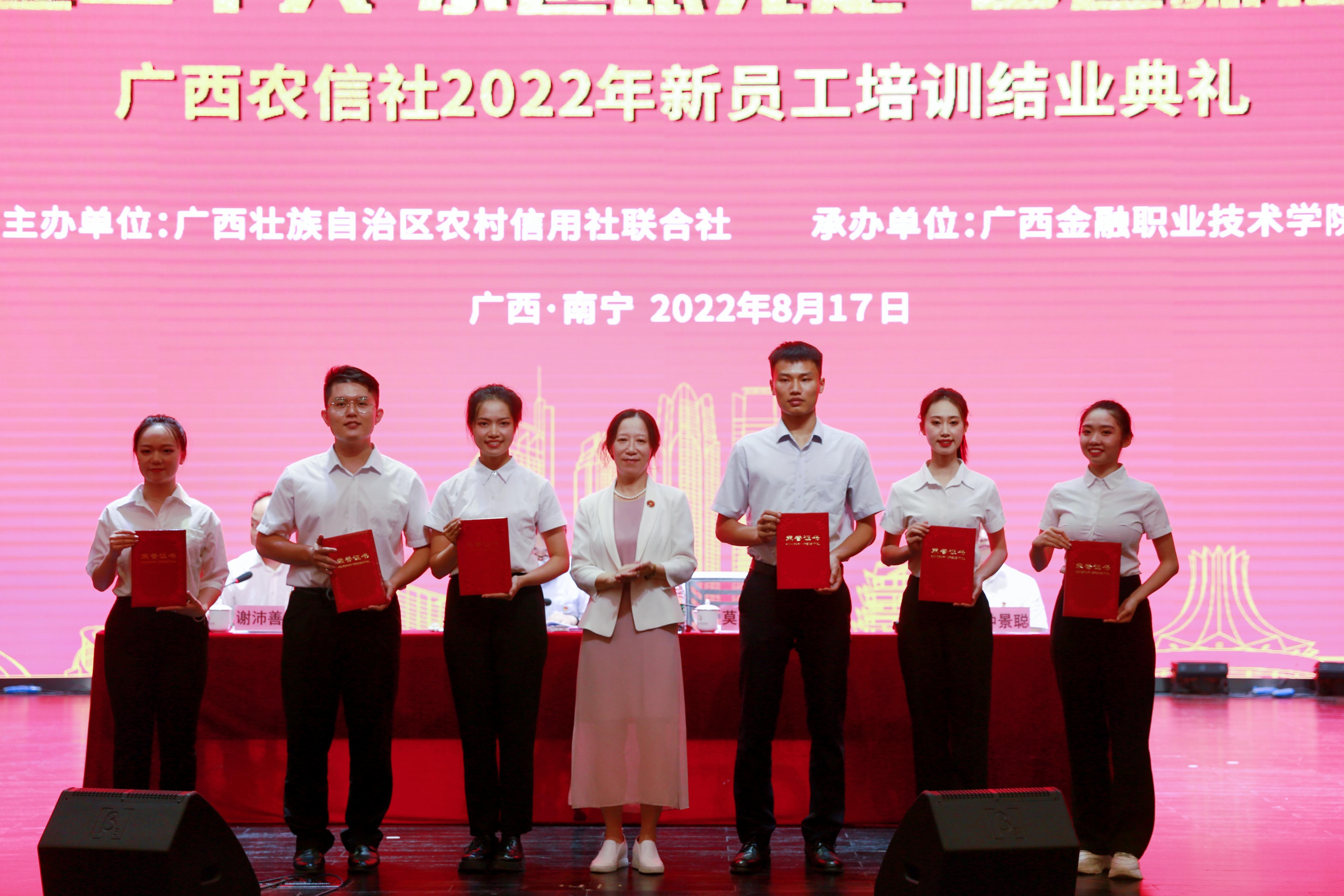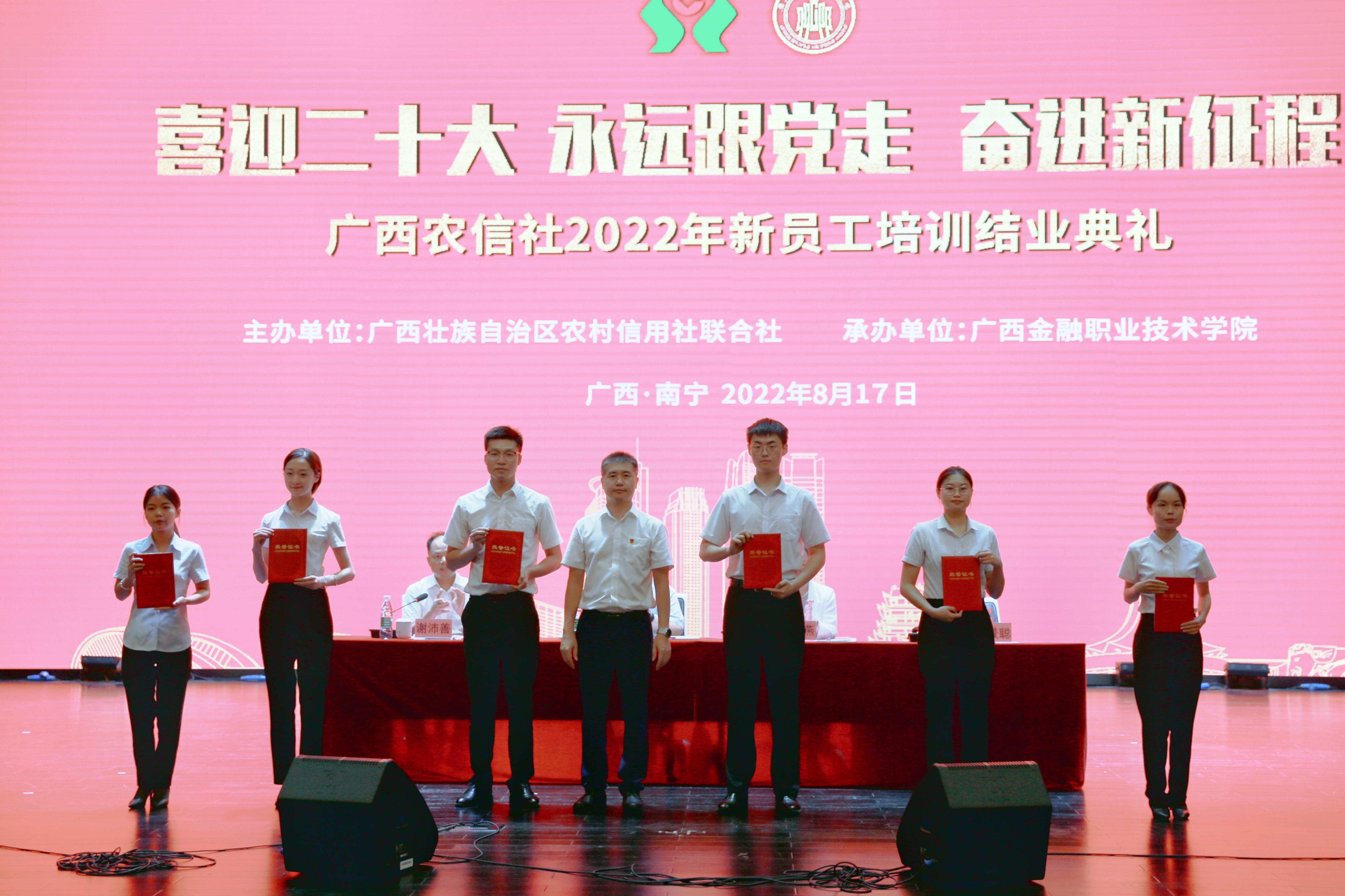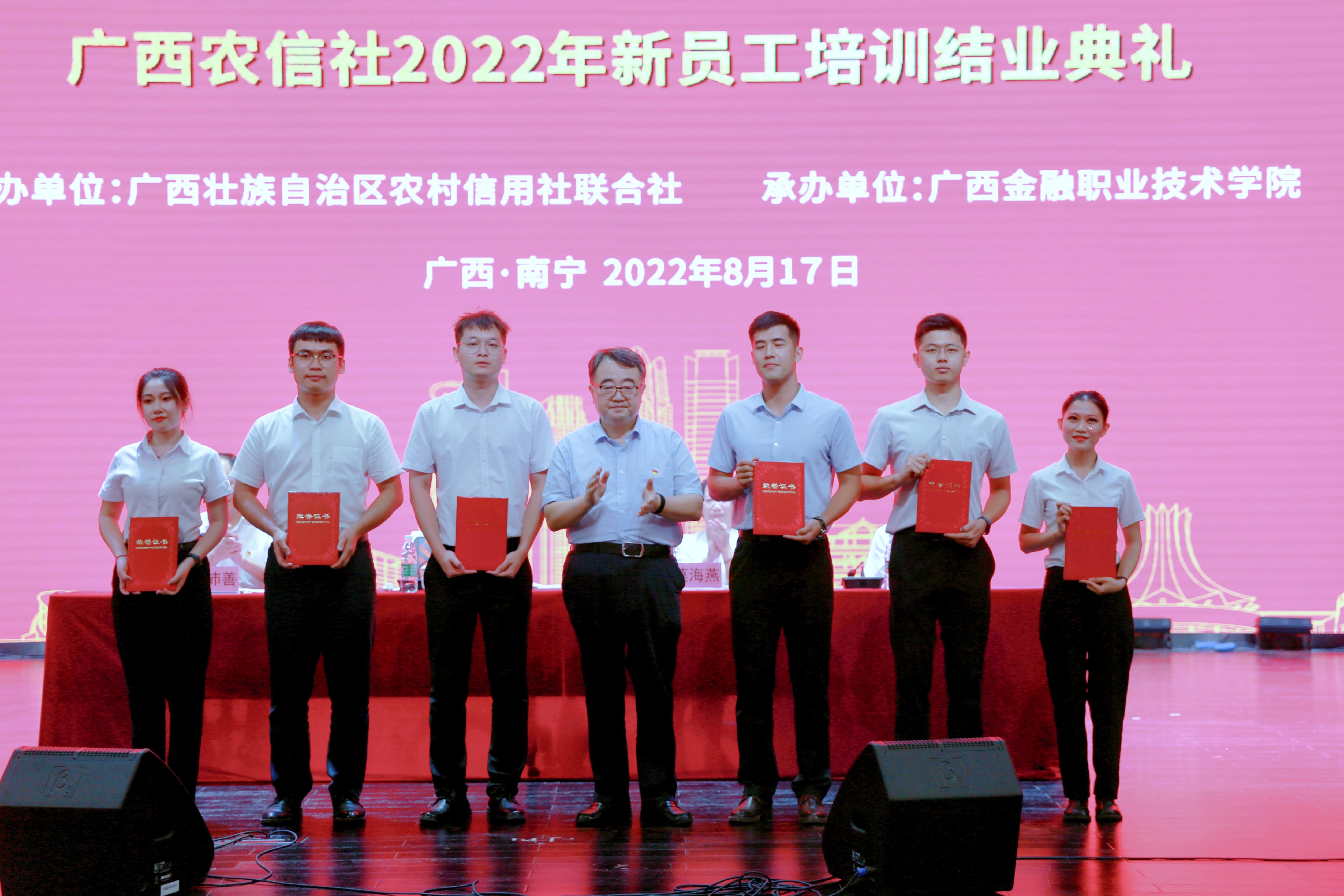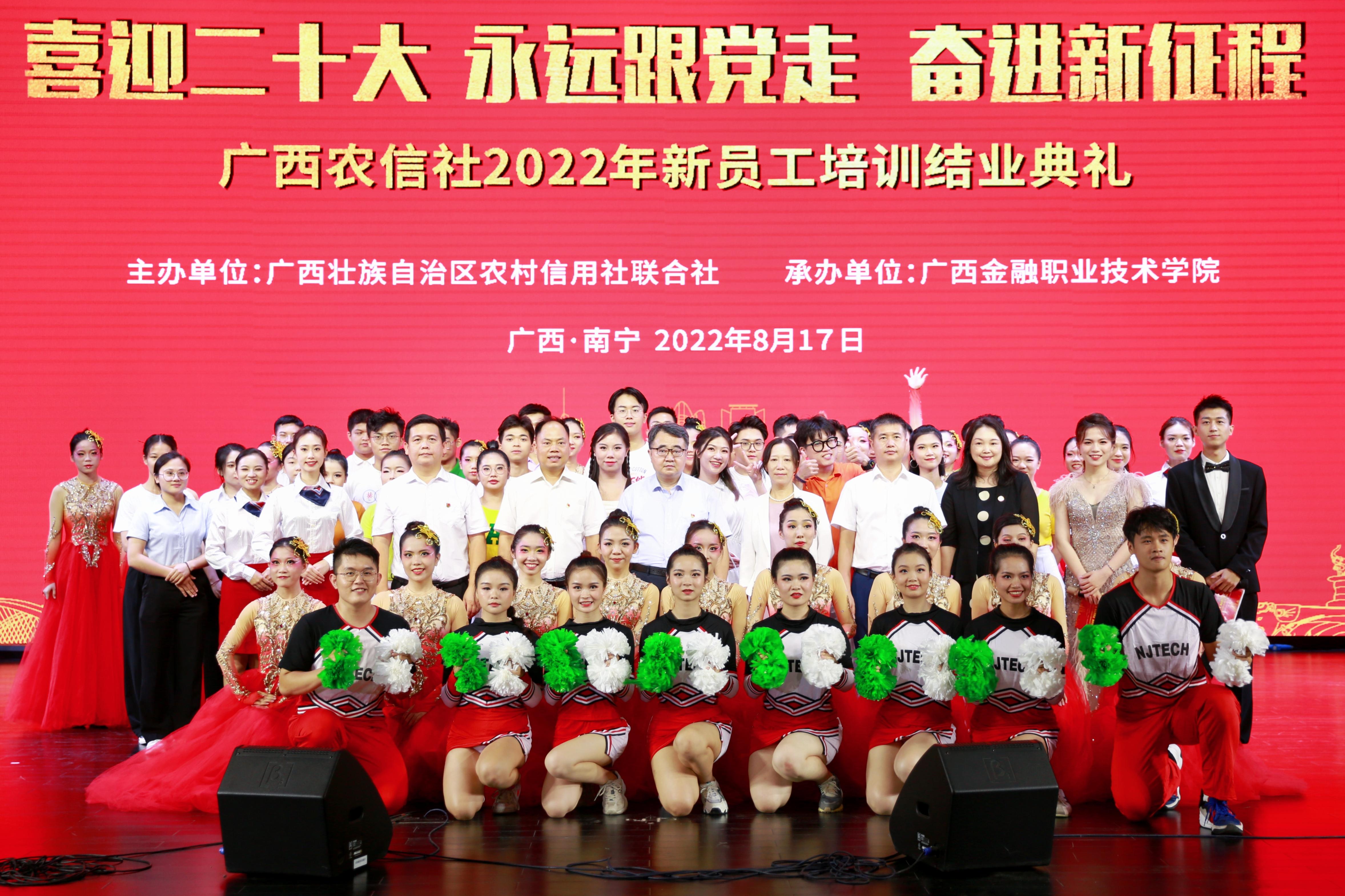 8月17日下午,“喜迎二十大 永远跟党走 奋进新征程”广西农信社2022年新员工培训结业典礼在伟德国际victor1946西校区国际会议中心举行。自治区农村信用联社党委书记、理事长罗军,党委组织部副部长、人力资源部副总经理钟景聪,伟德国际victor1946院长莫海燕、副院长谢沛善出席典礼。参加典礼的还有农信社、学校部分领导代表以及全体教官、班主任、培训学员。结业典礼由副院长谢沛善主持。