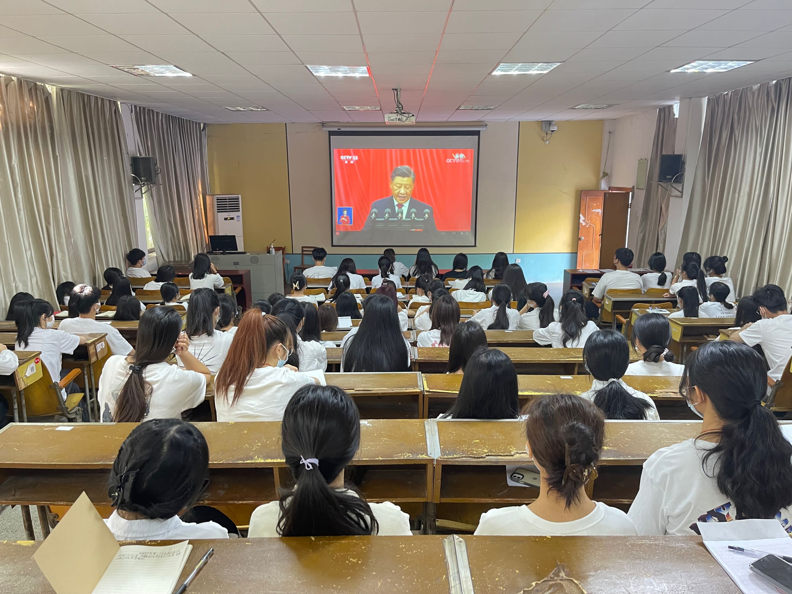 伟德官网在东、西校区设置会场集中组织收听收看中国共产党第二十次全国代表大会开幕会现场直播。学校领导、全体党员、各单位负责人及学生代表共600余人共同收看大会。会场内气氛热烈,师生们挥舞着党旗、国旗和校旗,热烈庆祝党的二十大胜利召开。