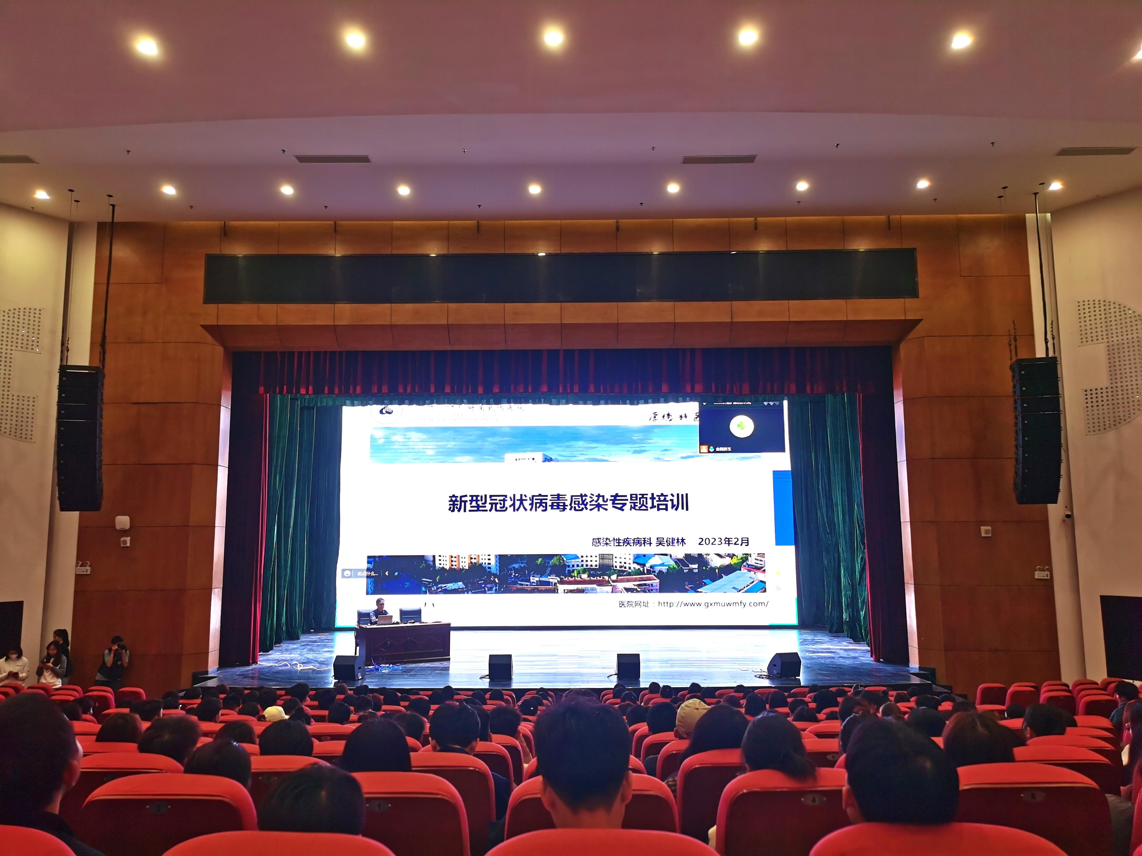 根据《学校新型冠状病毒感染防控方案》和《学校新型冠状病毒感染疫情防控操作指南》要求,为科学高效统筹“乙类乙管”后学校新型冠状病毒感染防控工作,切实保障校园广大师生的身心健康和生命安全,保障学校开学后各项工作正常有序进行。2月28日下午,伟德官网在国际会议中心开展“开学第一课”新型冠状病毒感染防控专题学生专场培训,培训由广西医科大学专家吴健林教授主讲。东、西校区设置视频分会场,伟德官网中、高职学生参加培训。