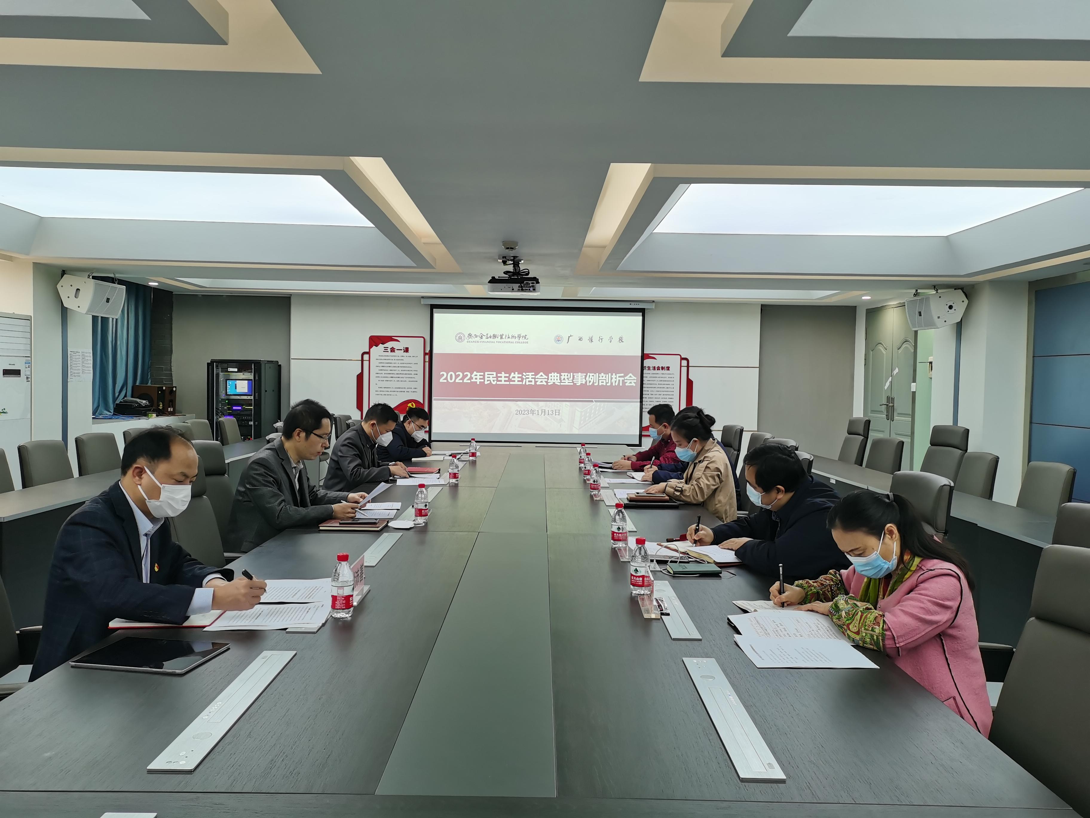 为开好2022年度民主生活会,2023年1月13日,伟德官网党委以“围绕学院‘十四五’广西高水平职业学校建设目标谋划岗位工作的意识亟待加强并取得相应标志性成果问题”为聚焦,召开2022年民主生活会典型事例分析会。学校党委班子领导参加会议,校长莫海燕、党委委员、组织人事处、纪检监察室主要负责人列席会议。党委书记李高岩主持并讲话。