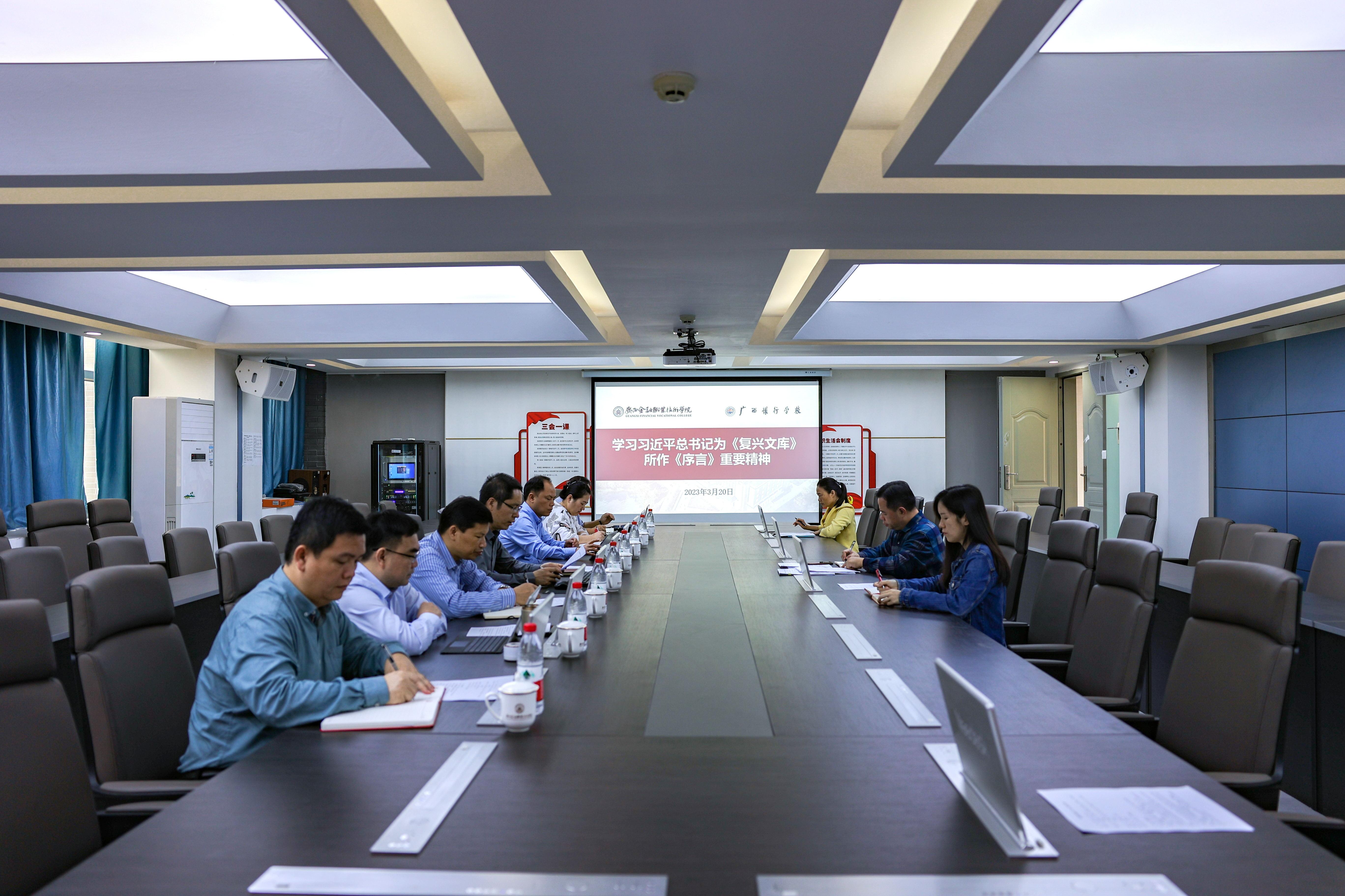 3月20日上午,伟德官网在西校区512会议室召开党委扩大会议,专题学习习近平总书记为《复兴文库》所作《序言》重要精神。学校领导、党委委员、党委宣传部、组织人事处、纪检监察室主要负责人参加会议。党委书记李高岩主持会议并讲话。