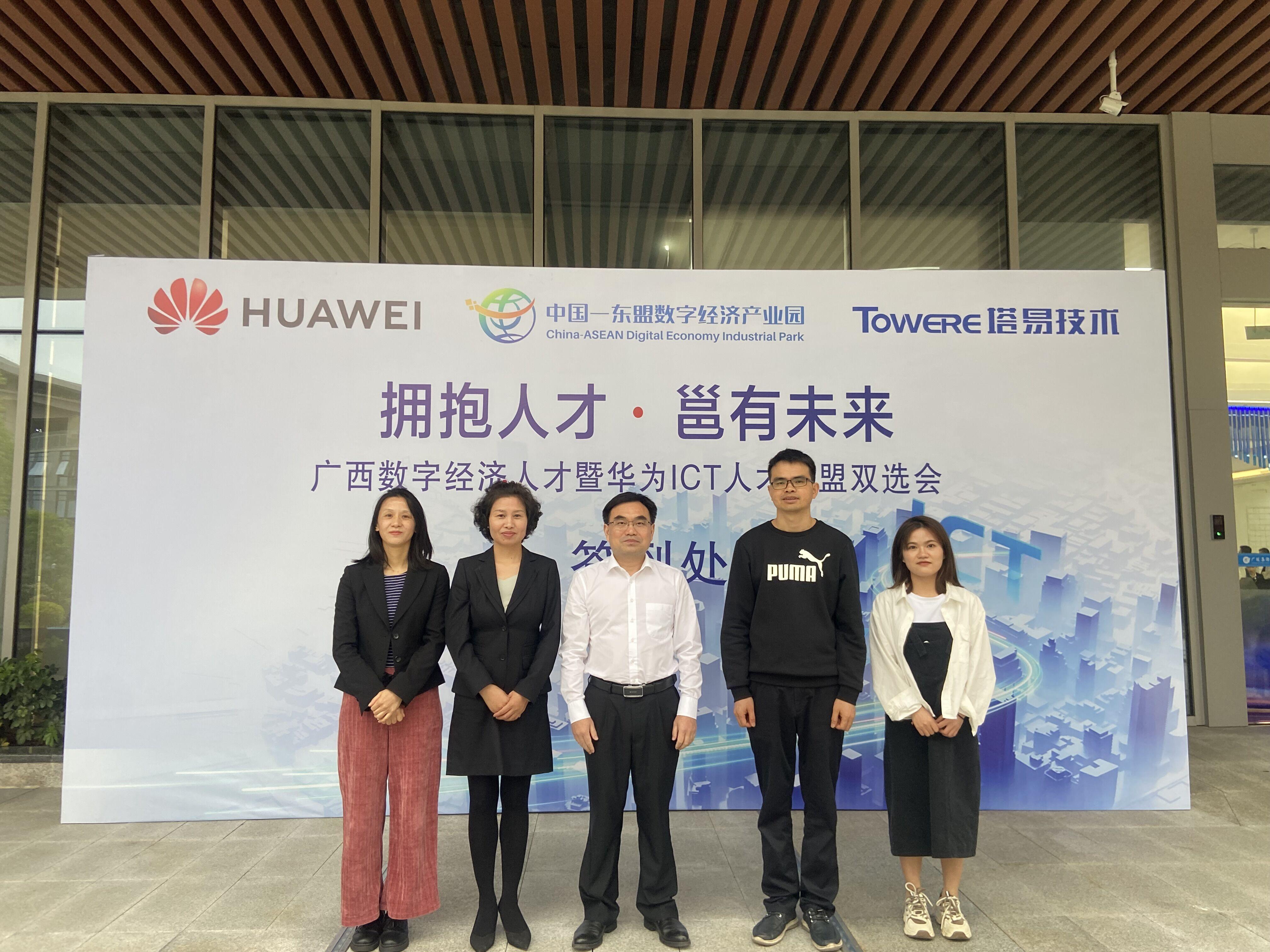 为贯彻落实党中央、国务院关于高校毕业生就业工作的决策部署,千方百计拓更多就业创业岗位和机会,保障毕业生顺利就业。4月8日下午,潘大胜副院长带领信息技术系、就业科等相关工作负责人,参加在中国-东盟数字经济产业园举办的广西数字经济人才暨华为ICT人才联盟双选会及交流会。