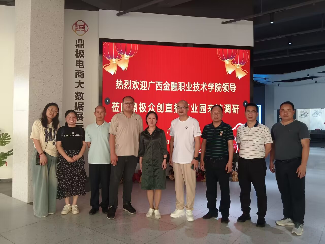 5月18日下午,莫海燕院长和谢沛善副院长带队到梧州粤桂合作特别试验区调研,与试验区内5家企业开展了座谈,并实地走访了梧州鼎极电商创客孵化直播产业园。