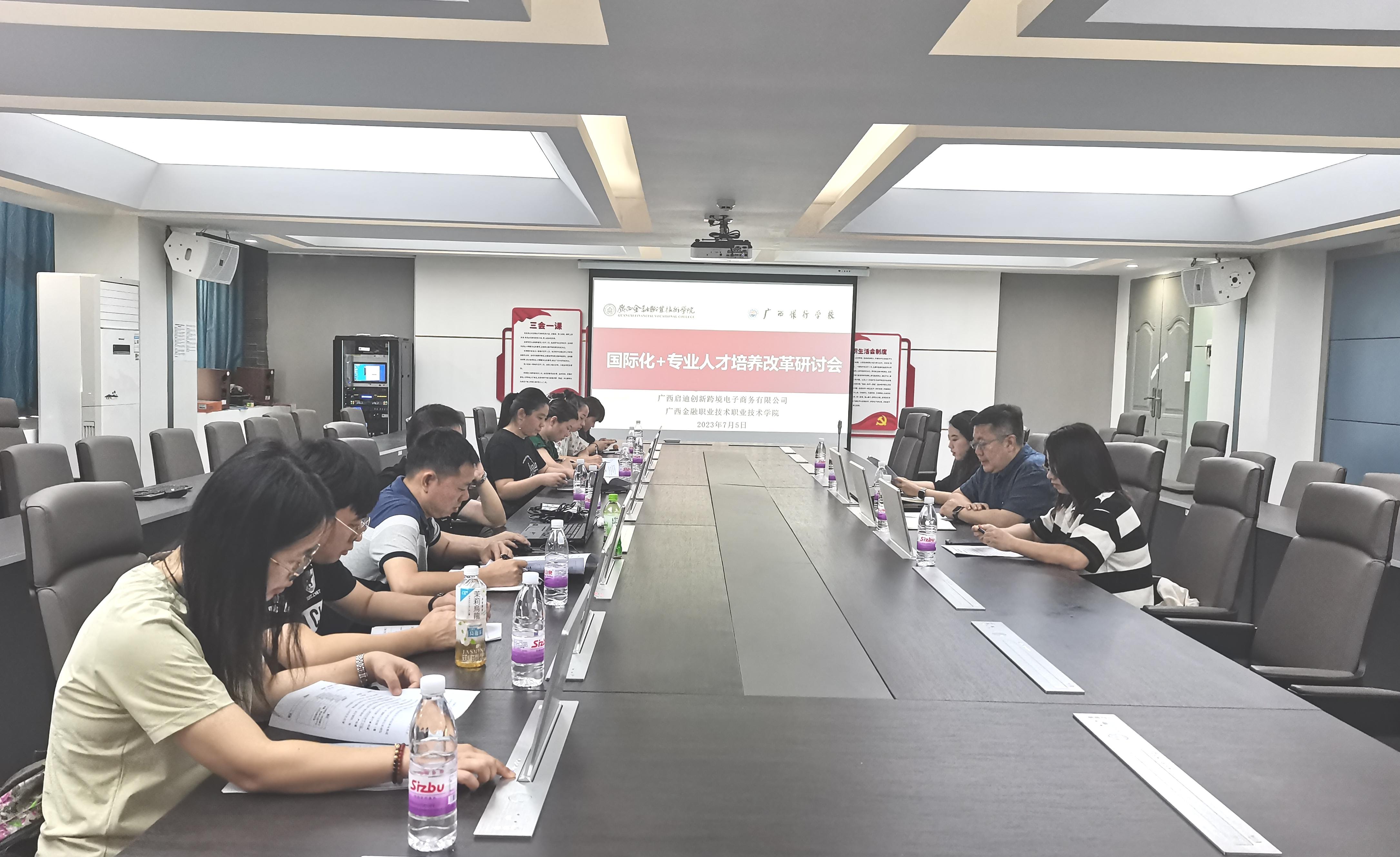 为加强产教融合,深化校企协同育人培养模式改革。7月5日,伟德官网召开“国际化+专业人才培养改革”专题研讨会,学院院长莫海燕、广西启迪创新跨境电子商务有限公司总经理丁国勋、副总经理诸葛榕荷、总经理助理于沁出席会议,伟德官网电子商务专业、国际经济与贸易专业、国际会计专业、国际金融专业和跨境电子商务专业的专业负责人及教师代表参加交流研讨。