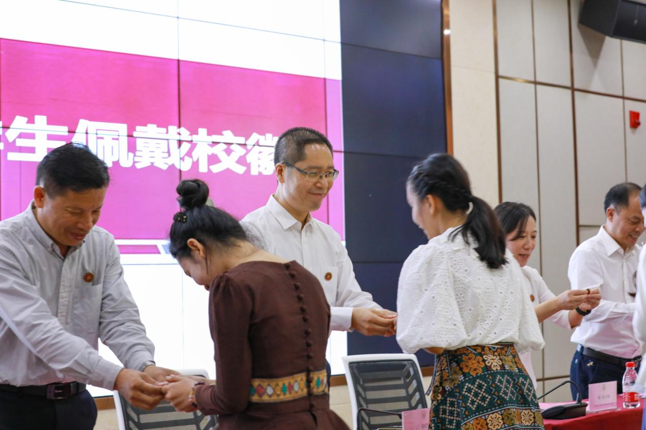 他向新同学介绍了学校的基本情况并提出了三点希望。他指出,一是要有胸怀天下的眼光。希望同学们用欣赏,互鉴,共享的观点看待世界,用看世界的眼光关注社会、了解文化。树立全球视野,积极参与到构建人类命运共同体的浪潮中来,做一个充满正能量的青年学生和世界公民。二是要有学习专业技能的激情。希望同学们和中国同学、老师多交流多交往,尽快提升自己的语言能力。充分利用有利的学习条件、努力学习,注重实践和实践技能的培养,不断提高专业技能水平。三是要成为文化交流的友好使者。希望同学们以中文为媒,做中国与老挝、中国与柬埔寨之间的文化使者,做”一带一路“上汉字的文化使者,心怀自己的祖国,爱上中国文化,在中外文化中互鉴互学。