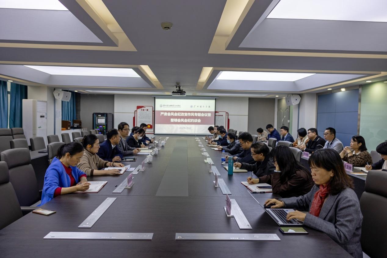 会上,李高岩书记通报了1月2日召开的专题警示教育大会会议情况,并传达了《自治区党委教育工委办公室 自治区教育厅办公室关于进一步严肃会风会纪的通知》(桂教工委办〔2021〕9号)和《中共伟德国际victor1946(广西银行学校)委员会关于进一步严肃会风会纪持续改进作风的通知》(桂金职院党〔2024〕1号)文件精神,指明了当前伟德官网教职工会风会纪中存在的问题,就教职员工思想认识不到位,政治意识缺乏,工作作风涣散等问题提出了明确要求。一是定规矩,严要求;二是强督查,树导向;三是抓典型,敲警钟,形成强大震慑,持续推动会风会纪向善、向好。
