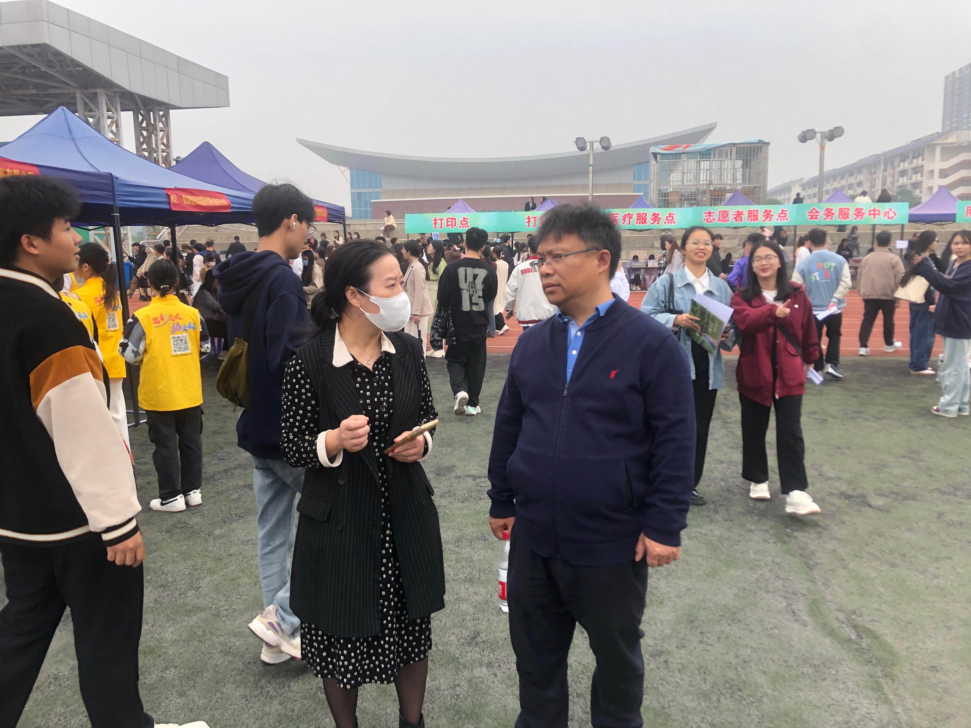 1月6日,伟德官网组织2024届毕业生前往广西民族大学思源湖校区,参加2024届广西综合性高校毕业生就业双选会,校长莫海燕、党委副书记、纪委书记刘华政带队指导,招生就业处、金融学院等相关工作人员一同前往。