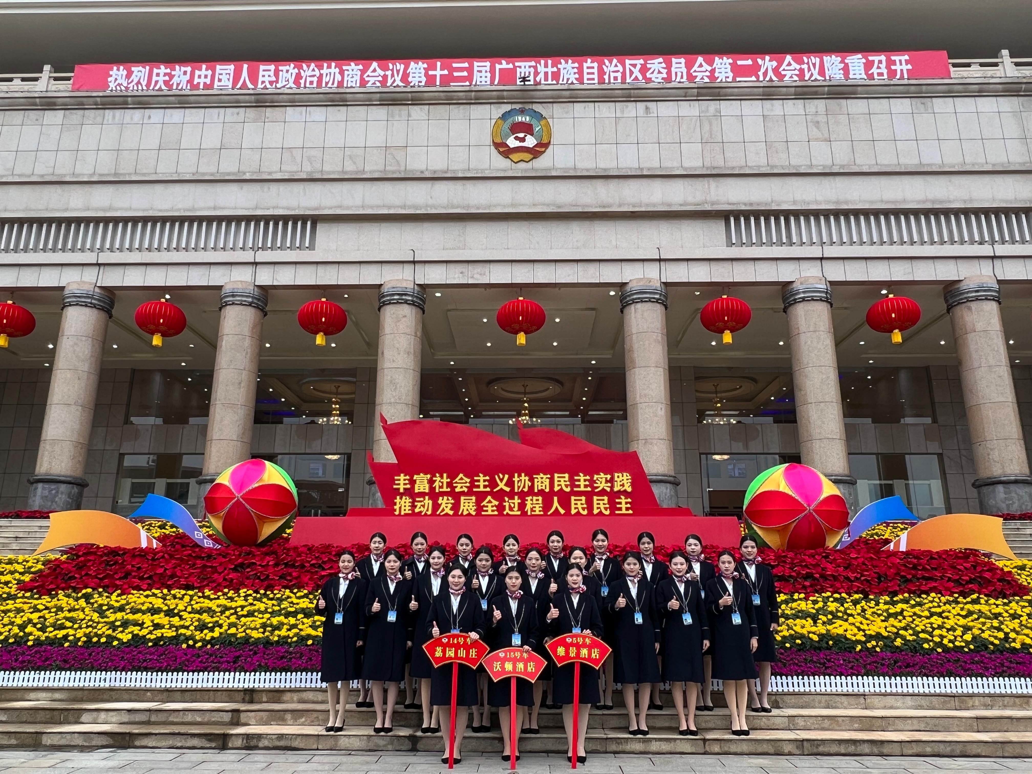 1月21日至25日,伟德官网学生分别在荔园山庄、荔园山庄维景酒店、沃顿酒店、裕达酒店提供会议用车的引导与礼宾服务。会议期间,伟德官网学生承担了发放座位表、引导政协委员入场等工作,他们严谨认真、态度积极,展示出饱满的精神状态和专业的服务水平。