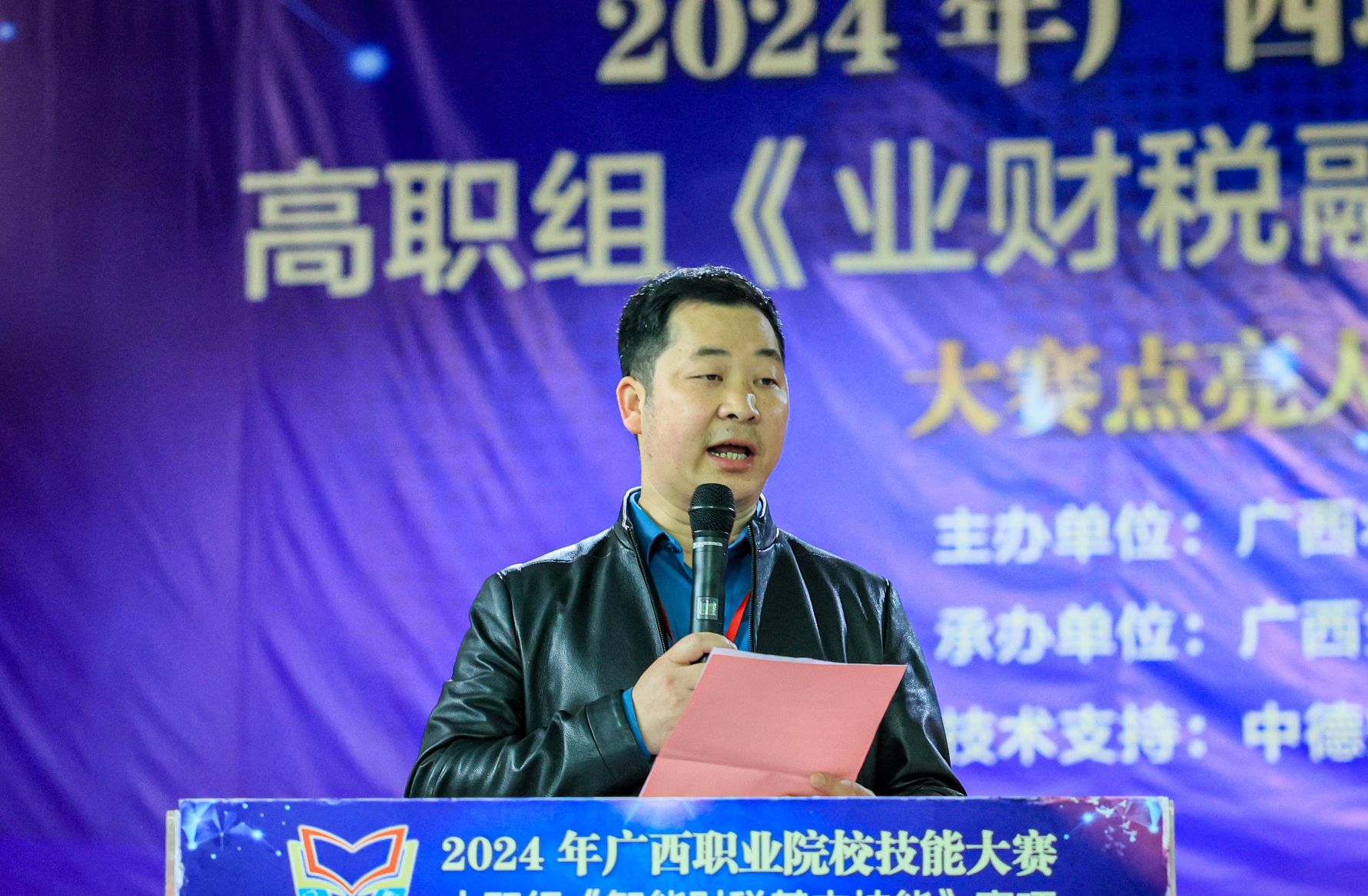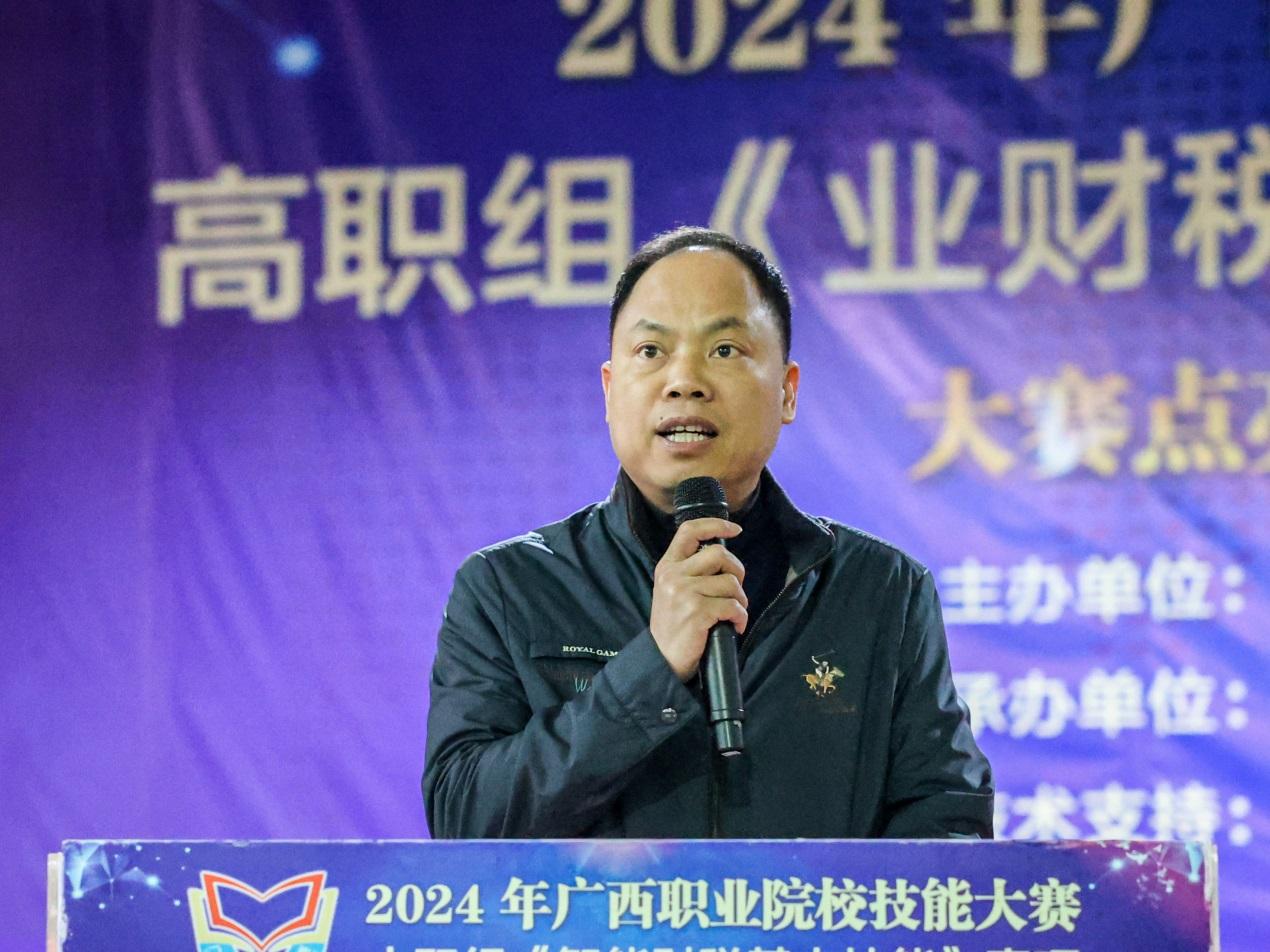 伟德官网副校长谢沛善出席开幕仪式并致辞,他首先代表学校全体师生,向远道而来的各位裁判、领队和参赛选手表示欢迎与感谢。他表示,《业财税融合大数据应用》赛项的举办能够推动广西职业教育与大数据产业的深度融合,培养具备业财税融合能力的高素质技能人才,期待通过这次比赛,全方位展示广西职业院校的教学成果,激发广大学子对业财税融合大数据应用领域的兴趣和热情,为未来的职业发展奠定坚实的基础。