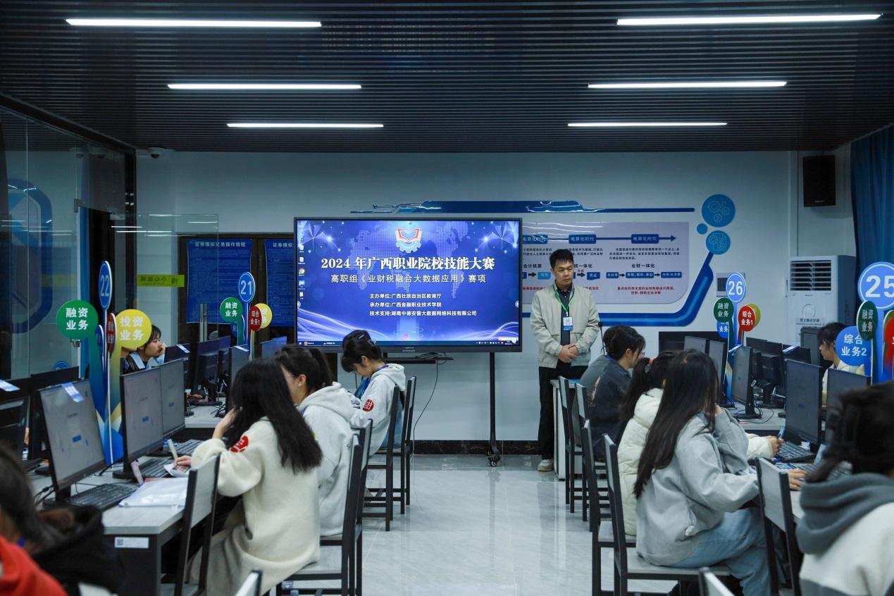 3月14日,2024年广西职业院校技能大赛高职组《业财税融合大数据应用》赛项在伟德官网东校区拉开帷幕,来自全区高职院校的31支代表队、124名选手将共同参与角逐。