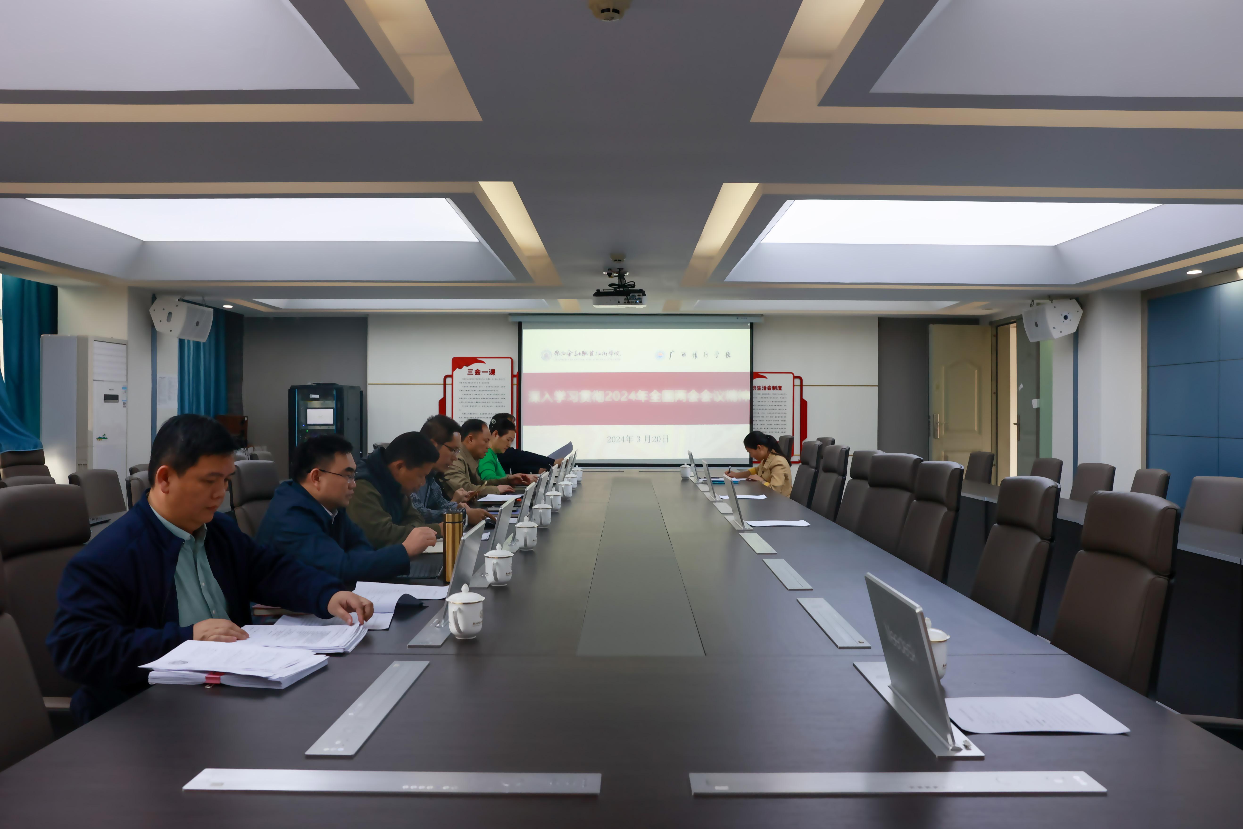 会议要求,全校各级党组织要采取多种形式组织传达学习全国两会精神,把深入学习贯彻习近平总书记在全国两会期间的系列重要讲话精神和全国两会精神作为当前和今后一个时期的重要政治任务,及时组织传达学习,认真抓好学习宣传贯彻工作,切实推动全国两会精神在学校落实落地。还要结合学校实际,增强做好新时代高等教育工作的使命感和责任感,团结动员全校广大师生员工为奋力书写好中国式现代化广西篇章作出更大贡献。